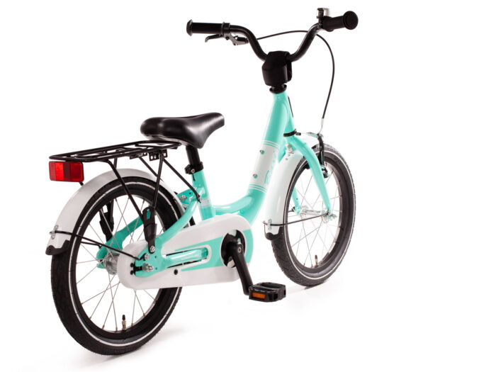 De frames van de nieuwe Baxi kinderfietsen zijn gemaakt van aluminium. Hierdoor zijn ze aanzienlijk lichter dan de klassieke stalen modellen. De Baxi-serie bestaat uit fietsjes in drie wielmaten met diverse aspecten die het rijden ermee veiliger maken, zoals met name de lage frame-doorstap en de traditionele terugtrapremnaaf. De bel, een zijstandaard, spatborden, de neopreen stuurpolstering, reflectoren voor en achter en de bagagedrager worden ook standaard meegeleverd. De zwart geanodiseerde aluminium velgen zijn voorzien van reflecterende banden. De bagagedrager kan eenvoudig worden gemonteerd indien gewenst. Bij kinderen die nog maar net groot genoeg zijn voor de gekozen wilelmaat kan het raadzaam zijn de bagagedrager niet te monteren, omdat in dat geval het zadel zo’n 2 centimeter lager kan worden gezet. Het zadel en stuur van de Baxi kinderfietsen kunnen versteld worden voor een optimale aanpassing aan de lengte van de berijder. Let op! De Baxi fietsjes worden zonder zijwieltjes geleverd. Het gebruik ervan is een beetje omstreden, omdat juist het balanceren op slechts twee wielen aangeleerd moet worden. Er zijn echter wel zijwieltjes verkrijgbaar die eenvoudig kunnen worden gemonteerd, indien u er toch voor kiest het fietsje ermee uit te rusten. De 14 inch serie is geschikt voor kinderen vanaf ca 2,5 jaar oud, met een lichaamslengte vanaf 101 cm en een binnenbeen lengte van minstens 42 cm. De 16 inch serie is geschikt voor kinderen vanaf ca 3 jaar oud, met een lichaamslengte vanaf 104 cm en een binnenbeen lengte van minstens 44 cm. De 18 inch serie is geschikt voor kinderen vanaf ca 4 jaar oud, met een lichaamslengte vanaf 112 cm en een binnenbeen lengte van minstens 49 cm. Voor de veiligheid van het kind kunt u beter niet ‘op de groei’ kopen , omdat juist aan het begin van de fietscarriere het kind zich zeker en fijn moet voelen op het fietsje. Omdat het zadel en het stuur verstelbaar zijn kan het kind er langere tijd gebruik van maken. Bachtenkirch fietsjes zijn heel degelijk gebouwd en kunnen, wanneer het fietsje toch te klein is geworden, nog prima een tweede of derde leven leiden bij een jonger broertje of zusje, bij neefjes of nichtjes of na verkoop aan een andere ouder.