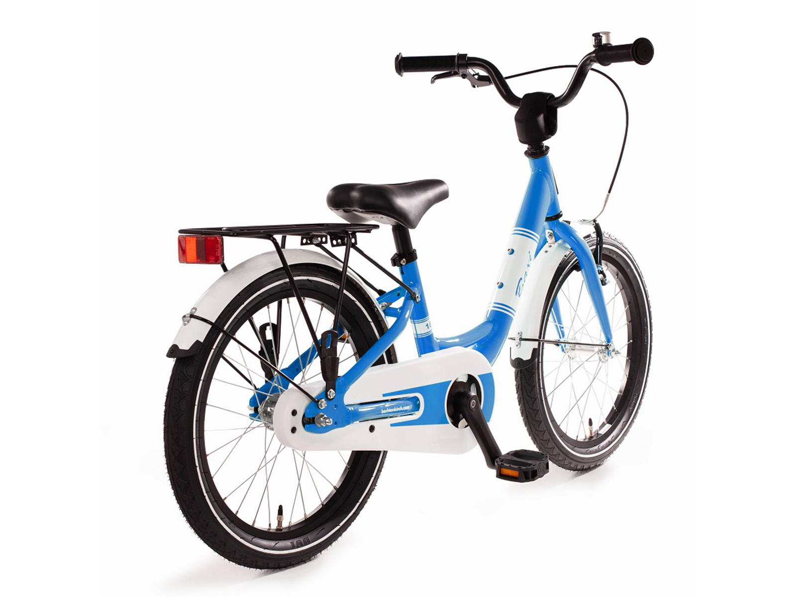 De frames van de nieuwe Baxi kinderfietsen zijn gemaakt van aluminium. Hierdoor zijn ze aanzienlijk lichter dan de klassieke stalen modellen. De Baxi-serie bestaat uit fietsjes in drie wielmaten met diverse aspecten die het rijden ermee veiliger maken, zoals met name de lage frame-doorstap en de traditionele terugtrapremnaaf. De bel, een zijstandaard, spatborden, de neopreen stuurpolstering, reflectoren voor en achter en de bagagedrager worden ook standaard meegeleverd. De zwart geanodiseerde aluminium velgen zijn voorzien van reflecterende banden. De bagagedrager kan eenvoudig worden gemonteerd indien gewenst. Bij kinderen die nog maar net groot genoeg zijn voor de gekozen wilelmaat kan het raadzaam zijn de bagagedrager niet te monteren, omdat in dat geval het zadel zo’n 2 centimeter lager kan worden gezet. Het zadel en stuur van de Baxi kinderfietsen kunnen versteld worden voor een optimale aanpassing aan de lengte van de berijder. Let op! De Baxi fietsjes worden zonder zijwieltjes geleverd. Het gebruik ervan is een beetje omstreden, omdat juist het balanceren op slechts twee wielen aangeleerd moet worden. Er zijn echter wel zijwieltjes verkrijgbaar die eenvoudig kunnen worden gemonteerd, indien u er toch voor kiest het fietsje ermee uit te rusten. De 14 inch serie is geschikt voor kinderen vanaf ca 2,5 jaar oud, met een lichaamslengte vanaf 101 cm en een binnenbeen lengte van minstens 42 cm. De 16 inch serie is geschikt voor kinderen vanaf ca 3 jaar oud, met een lichaamslengte vanaf 104 cm en een binnenbeen lengte van minstens 44 cm. De 18 inch serie is geschikt voor kinderen vanaf ca 4 jaar oud, met een lichaamslengte vanaf 112 cm en een binnenbeen lengte van minstens 49 cm. Voor de veiligheid van het kind kunt u beter niet ‘op de groei’ kopen , omdat juist aan het begin van de fietscarriere het kind zich zeker en fijn moet voelen op het fietsje. Omdat het zadel en het stuur verstelbaar zijn kan het kind er langere tijd gebruik van maken. Bachtenkirch fietsjes zijn heel degelijk gebouwd en kunnen, wanneer het fietsje toch te klein is geworden, nog prima een tweede of derde leven leiden bij een jonger broertje of zusje, bij neefjes of nichtjes of na verkoop aan een andere ouder.