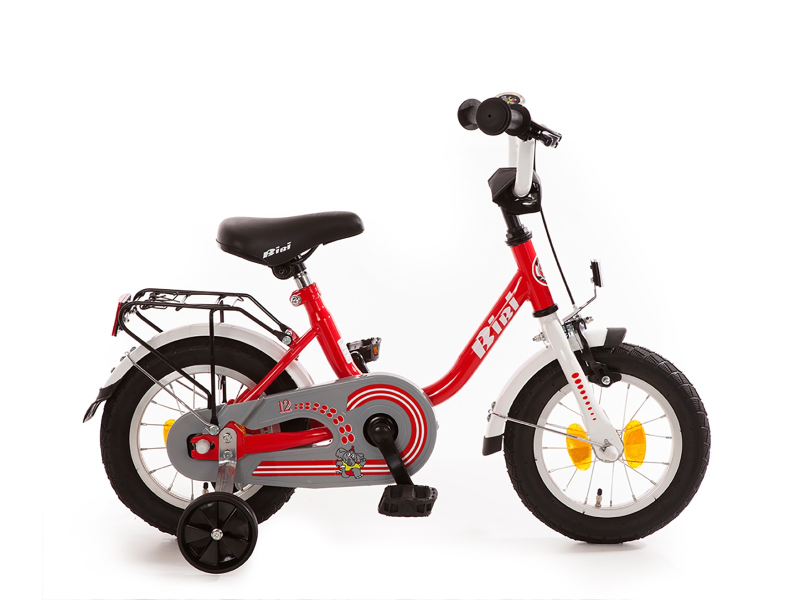 **Bibi, goede fietsjes voor een veilig begin van de fietscarriere.** Een eerste echte fiets! Wat een grote stap in een kinderleven. Zo’n prachtig glimmend apparaat waarmee je je wereld kunt verkennen en zelfstandig naar je vriendjes en vriendinnetjes kunt fietsen! Een grootse ervaring, het begin van nieuwe avonturen en ontdekkingen. Als ouder wil je er dan de garantie dat dat fietsje voldoet aan alle veiligheidseisen, dat de kwaliteit zo goed is dat het fietsje jarenlang kan functioneren en dat je kind er veilig en verantwoord mee onderweg kan gaan. Met de fietsjes van Bachtenkirch kunt u daarvan op aan. Kinderen vanaf pakweg 2 jaar kunnen op een fietsje met 12 inch wieltjes beginnen met fietsen. Ze kunnen er dan tot hun vierde op blijven rijden. De 14 inch is er voor kinderen van 3 tot 5 jaar, die van 16 inch voor 4 tot 6 jaar en de 18 inch modellen voor 5 tot 7 jaar. Natuurlijk ligt het aan de lengte van het kind welke fiets het beste past. De Bibi serie van Bachtenkirch bestaat uit fietsjes in 4 frame/wielmaten en 4 vrolijke kleuren, met een lage instap frame, wielen en trapas met kogellagers, aluminium velgen, kettingkast en bagagedragertje. Zadel- en stuurhoogte zijn instelbaar. De 12 en 14 inch fietsjes zijn voorzien van zijwieltjes, die afneembaar zijn wanneer de berijder zeker genoeg fietst. De 16 en 18 inch modellen hebben een zijstandaard, zodat de fiets makkelijk geparkeerd kan worden. De Bibi serie is eenvoudig van lijn en geschikt voor meisjes en jongens, waarbij de kleur voor de jonge berijder (m/v) waarschijnlijk de bepalende factor zal zijn. De Duitse firma Bachtenkirch maakt al vele tientallen jaren kinderfietsen en heeft hierbij een hoge graad van perfectie bereikt. Zij scoren dan ook hoog op betrouwbaarheid, veiligheid en kwaliteit. Wanneer u een goede fiets wil voor uw kind maar niet te duur uit wilt zijn is de Bibi serie een uitstekende keuze. De fietsjes gaan vele jaren mee als u ze een beetje aandacht en onderhoud geeft, zodat ook broertjes of zusjes, neefjes, nichtjes of buurkinderen er nog veel plezier van kunnen beleven als uw kindje er te groot voor is geworden. **Kenmerken:** – Terugtraprem en V-brake op voorwiel – Reflectoren aan voor- en achterkant – Bel – Gepolsterd stuur – Gesloten kettingkast – Spatborden Zithoogte: 12 inch: 44-50 cm, 14 inch: 46-55 cm, 16 inch: 53-58 cm en 18 inch 55-61 cm.