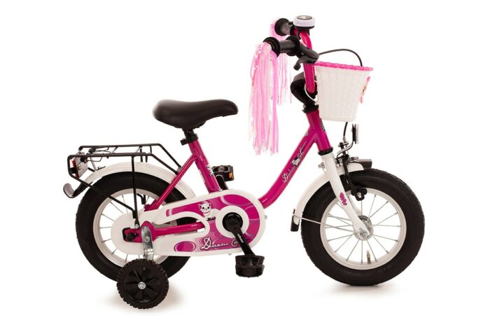 **Dream Cat, mooie fietsjes om veilig te leren fietsen.** Een eerste echte fiets! Wat een grote stap in een kinderleven. Zo’n prachtig glimmend apparaat waarmee je je wereld kunt verkennen en zelfstandig naar je vriendjes en vriendinnetjes kunt fietsen! Een grootse ervaring, het begin van nieuwe avonturen en ontdekkingen. Als ouder wil je er dan de garantie dat dat fietsje voldoet aan alle veiligheidseisen, dat de kwaliteit zo goed is dat het fietsje jarenlang kan functioneren en dat je kind er veilig en verantwoord mee onderweg kan gaan. Met de fietsjes van Bachtenkirch kunt u daarvan op aan. Kinderen vanaf pakweg 3 jaar kunnen op een fietsje met 12 inch wieltjes beginnen met fietsen. Ze kunnen er dan tot hun vijfde op blijven rijden. De 14 inch is er voor kinderen van 4 tot 6 jaar. De 16 inch voor 5 tot 7 jaar en de 18 inch modellen voor 6 tot 8 jaar hebben een cruiserframe. Natuurlijk ligt het aan de lengte van het kind welke fiets het beste past. De DreamCat serie van Bachtenkirch bestaat uit stoere fietsjes in 4 frame/wielmaten. De fietsjes hebben comfortabele luchtbanden, een stevig frame, wielen en trapas met kogellagers, aluminium velgen, kettingkast en metalen spatbordjes. Zadel- en stuurhoogte zijn instelbaar. De fiets is voorzien van een mand en handvatten met franje. De 12 en 14 inch fietsjes zijn voorzien van zijwieltjes, die afneembaar zijn wanneer de berijder zeker genoeg fietst. De 16 en 18 inch modellen hebben een zijstandaard, zodat de fiets makkelijk geparkeerd kan worden. De DreamCat serie is geschikt voor meisjes en jongens maar richt zich vooral op meisjes door de kleurstelling, mand en kattendecals. De Duitse firma Bachtenkirch maakt al vele tientallen jaren kinderfietsen en heeft hierbij een hoge graad van perfectie bereikt. Zij scoren dan ook hoog op betrouwbaarheid, veiligheid en kwaliteit. Wanneer u een goede, stoere fiets wil voor uw kind maar niet te duur uit wilt zijn is de Dream Cat een perfecte keuze. De fietsjes gaan vele jaren mee als u ze een beetje aandacht en onderhoud geeft, zodat ook broertjes of zusjes, neefjes, nichtjes of buurkinderen er nog veel plezier van kunnen beleven als uw kindje er te groot voor is geworden. **Kenmerken:** – Terugtraprem en V-brake op voorwiel – Reflectoren aan voor- en achterkant – Bel – Gepolsterd stuur – Gesloten kettingkast – Metalen spatborden – Gevlochten kunststof mand – Kwaliteitstrapas van Thun Zithoogte: 12 inch: 44-50 cm, 14 inch: 46-55 cm, 16 inch: 51-57 cm en 18 inch 58-62 cm.