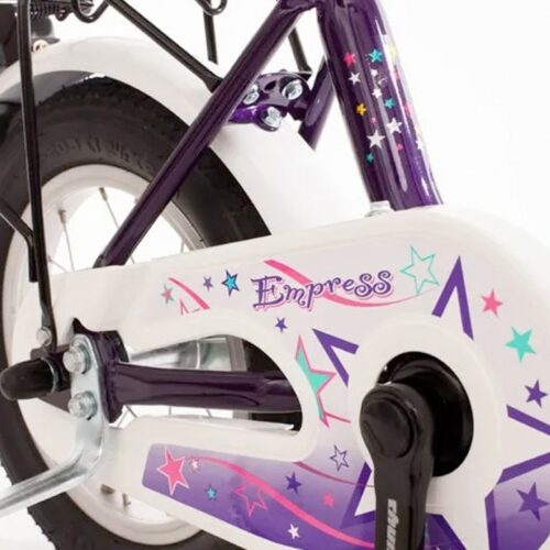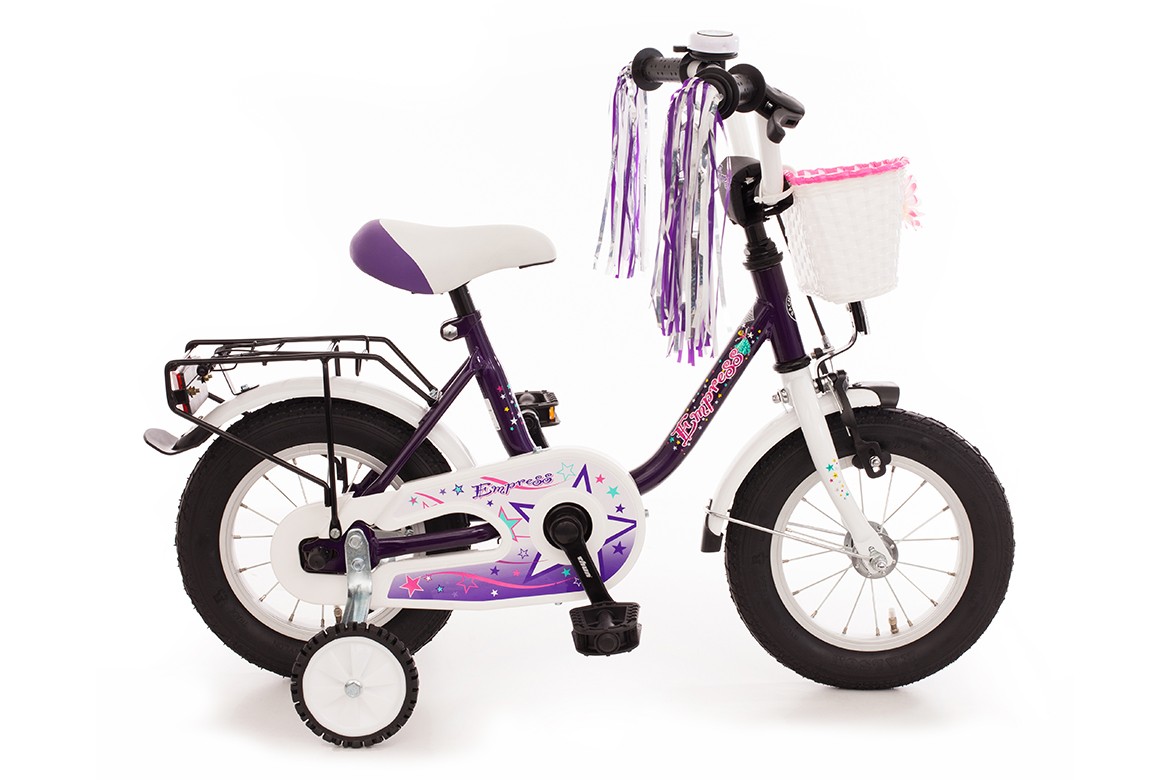 **Empress, mooie fietsjes om veilig te leren fietsen.** Een eerste echte fiets! Wat een grote stap in een kinderleven. Zo’n prachtig glimmend apparaat waarmee je je wereld kunt verkennen en zelfstandig naar je vriendjes en vriendinnetjes kunt fietsen! Een grootse ervaring, het begin van nieuwe avonturen en ontdekkingen. Als ouder wil je er dan de garantie dat dat fietsje voldoet aan alle veiligheidseisen, dat de kwaliteit zo goed is dat het fietsje jarenlang kan functioneren en dat je kind er veilig en verantwoord mee onderweg kan gaan. Met de fietsjes van Bachtenkirch kunt u daarvan op aan. Kinderen vanaf pakweg 3 jaar kunnen op een fietsje met 12 inch wieltjes beginnen met fietsen. Ze kunnen er dan tot hun vijfde op blijven rijden. De 14 inch is er voor kinderen van 4 tot 6 jaar, die van 16 inch voor 5 tot 7 jaar en de 18 inch modellen voor 6 tot 8 jaar. Natuurlijk ligt het aan de lengte van het kind welke fiets het beste past. De Empress serie van Bachtenkirch bestaat uit stoere fietsjes in 4 frame/wielmaten. De fietsjes hebben comfortabele luchtbanden, een stevig frame, wielen en trapas met kogellagers, aluminium velgen, kettingkast en metalen spatbordjes. Zadel- en stuurhoogte zijn instelbaar. De fiets is voorzien van een mand en handvatten met franje. De 12 en 14 inch fietsjes zijn voorzien van zijwieltjes, die afneembaar zijn wanneer de berijder zeker genoeg fietst. De 16 en 18 inch modellen hebben een zijstandaard, zodat de fiets makkelijk geparkeerd kan worden. De Empress serie is geschikt voor meisjes en jongens maar richt zich vooral op feetjes door de kleurstelling en sterrenstof decals. De Duitse firma Bachtenkirch maakt al vele tientallen jaren kinderfietsen en heeft hierbij een hoge graad van perfectie bereikt. Zij scoren dan ook hoog op betrouwbaarheid, veiligheid en kwaliteit. Wanneer u een goede, stoere fiets wil voor uw kind maar niet te duur uit wilt zijn is de Empress serie een perfecte keuze. De fietsjes gaan vele jaren mee als u ze een beetje aandacht en onderhoud geeft, zodat ook broertjes of zusjes, neefjes, nichtjes of buurkinderen er nog veel plezier van kunnen beleven als uw kindje er te groot voor is geworden. **Kenmerken:** – Terugtraprem en V-brake op voorwiel – Reflectoren aan voor- en achterkant – Bel – Gepolsterd stuur – Gesloten kettingkast – Metalen spatborden – Gevlochten kunststof mand – Kwaliteitstrapas van Thun Zithoogte: 12 inch: 44-50 cm, 14 inch: 46-55 cm, 16 inch: 53-58 cm en 18 inch 55-61 cm.