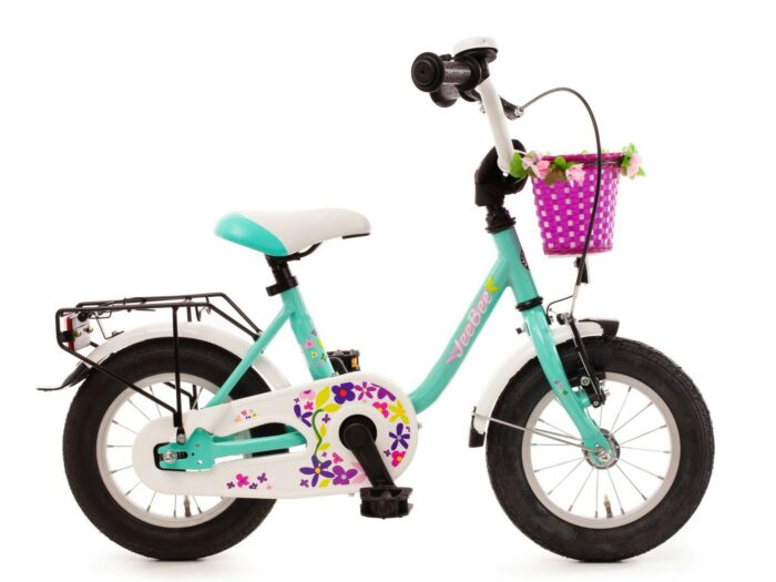 **Jee Bee, leuke fietsjes om veilig met fietsen te beginnen.** Een eerste echte fiets! Wat een grote stap in een kinderleven. Zo’n prachtig glimmend apparaat waarmee je je wereld kunt verkennen en zelfstandig naar je vriendjes en vriendinnetjes kunt fietsen! Een grootse ervaring, het begin van nieuwe avonturen en ontdekkingen. Als ouder wil je er dan de garantie dat dat fietsje voldoet aan alle veiligheidseisen, dat de kwaliteit zo goed is dat het fietsje jarenlang kan functioneren en dat je kind er veilig en verantwoord mee onderweg kan gaan. Met de fietsjes van Bachtenkirch kunt u daarvan opaan. Kinderen vanaf pakweg 3 jaar kunnen op een fietsje met 12 inch wieltjes beginnen met fietsen. Ze kunnen er dan tot hun vierde op blijven rijden. De 14 inch is er voor kinderen van 3 tot 5 jaar, die van 16 inch voor 4 tot 6 jaar en de 18 inch modellen voor 4 tot 7 jaar. Natuurlijk ligt het aan de lengte van het kind welke fiets het beste past. De Jee Bee serie van Bachtenkirch bestaat uit fietsjes in 4 frame/wielmaten en 3 frisse kleuren, met een sterk stalen frame, wielen en trapas met kogellagers, aluminium velgen, gesloten kettingkast en bagagedragertje. Zadel- en stuurhoogte zijn instelbaar. De fietsjes zijn voorzien van een zijstandaard, zodat de fiets makkelijk geparkeerd kan worden. De fietsjes hebben spatborden met beschermrandjes, het stuur is voorzien van een stootkussentje en voorop de fiets tref je een kunststof mandje aan. Zijwieltjes zijn als optie verkrijgbaar. De Duitse firma Bachtenkirch maakt al vele tientallen jaren kinderfietsen en heeft hierbij een hoge graad van perfectie bereikt. Zij scoren dan ook hoog op betrouwbaarheid, veiligheid en kwaliteit. Wanneer u een goede fiets wil voor uw kind maar niet te duur uit wilt zijn is de Jee Bee serie een uitstekende keuze. De fietsjes gaan vele jaren mee als u ze een beetje aandacht en onderhoud geeft, zodat ook broertjes of zusjes, neefjes, nichtjes of buurkinderen er nog veel plezier van kunnen beleven als uw kindje er te groot voor is geworden. **Kenmerken:** – Terugtraprem en V-brake op voorwiel – Reflectoren aan voor- en achterkant – Bel – Gepolsterd stuur – Gesloten kettingkast – Spatborden Zithoogte: 12 inch: 44-50 cm, 14 inch: 46-55 cm, 16 inch: 51-57 cm en 18 inch 58-62 cm.