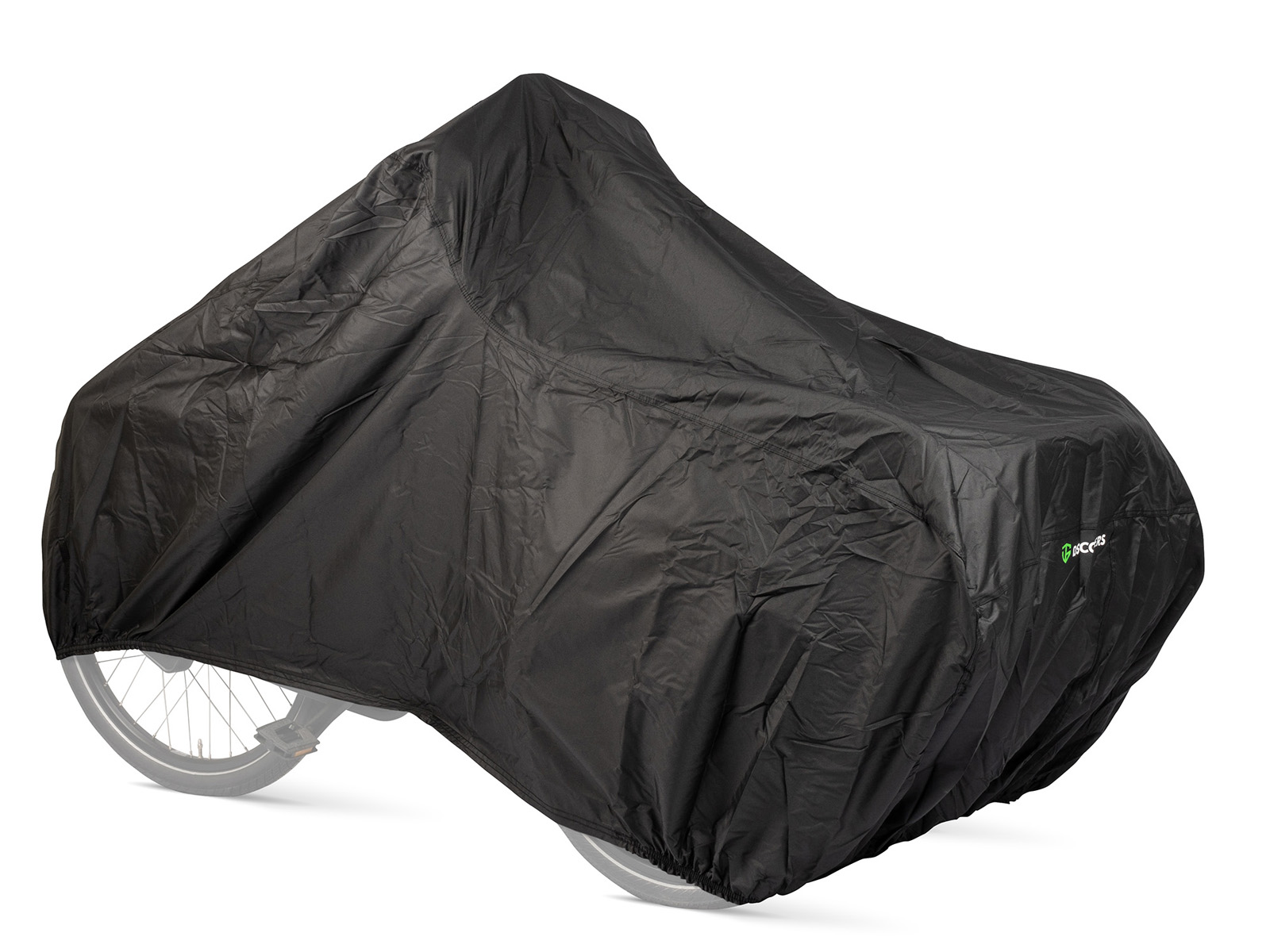 **Bescherm jouw SociBike bakfiets** tegen regen, stof, UV en vorst met de SociBike bakfietshoes. Niet iedereen kan zijn SociBike binnen zetten in de schuur of garage en daarom staat de bakfiets vaak buiten. Weer en wind hebben dan vrij spel en dat heeft op lange termijn invloed op de levensduur van een bakfiets. We adviseren daarom om een SociBike die buiten staat, te beschermen met de SociBike bakfietshoes. De bakfietshoes is gemaakt van ** sterk en duurzaam** 300D polyester en is 100%25 waterdicht. De hoes is eenvoudig over de bakfiets heen te leggen en heeft een verstelbare band met kliksluiting tegen wegwaaien. Er zitten slotgaten in voor een kettingslot en de hoes wordt geleverd in een handige opbergzak.