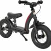 **De eerste stapjes van je kind of kleinkind zijn een wonder, niet in het minst voor het kindje zelf.** Ineens is er veel meer van de omgeving te zien en het kind valt van de ene verwondering in de andere. De eerste stapjes gaan moeizaam, met vallen en opstaan, maar al snel heeft je kindje de smaak te pakken en wil het je overal volgen, of misschien zelfs een eigen weg gaan. Tegen die tijd kan je overwegen het eerste loopfietsje aan te schaffen. Een loopfietsje leert het kindje het evenwicht bewaren, omgaan met de omgeving, sneller bewegen dan lopen en levert daarbij een hele hoop plezier. Bikestar, een bekende fabrikant uit Duitsland, biedt een keur aan loopfietsjes aan. Van hout, van aluminium en andere metalen, met massieve bandjes en luchtbandjes. Voor de allerjongste en ondernemende kinderen vanaf 18 maanden zijn er tot tweewielers om te bouwen driewielers. Voor de stoertjes zijn er MTB-loopfietsjes met 12 inch wielen. Het aanbod is kleurrijk en heel divers, maar altijd is er gelet op de grootste veiligheid in materiaalkeuze, bouwkwaliteit en ergonomie. Een feest voor het kind, een hele geruststelling voor de (groot)ouders. **Licht, stabiel en veilig** Dit loopfietsje weegt niet veel maar is toch stabiel en veilig. Het kind kan met dit fietsje beginnen de wereld te ontdekken. Alle gebruikte materialen, ook de lak en handgrepen, voldoen aan de wettelijke normen van veiligheid en zijn dus gifvrij en van onberispelijke kwaliteit. **Een fantastische ervaring** Met een loopfietsje krijgt het kind de vrijheid om zelf te gaan waar het wil, leert het het evenwicht te bewaren, en leert het omgaan met snelheid. **Specificaties** – Leeftijd: vanaf ca. 2-3 jaar (88 cm lengte) – Zadelhoogte: ca. 30-37 cm – Stuurhoogte: ca. 43-49 cm – Gewicht: 4,4 Kg – Solide stalen frame met meerdere slagvaste laklagen – Stuur met uitslagbegrenzing – In hoogte en hoek verstelbaar stuur met polstering – Gifvrije veiligheidshandgrepen – Handrem op het achterwiel met kindermaat handgreep – Extra dikke 10 inch luchtbanden, veert lekker – Standaard uitgerust met een zijstandaard – 85%25 voorgemonteerd, afmontage neemt ca 10 minuten in beslag