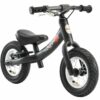 **De eerste stapjes van je kind of kleinkind zijn een wonder, niet in het minst voor het kindje zelf.** Ineens is er veel meer van de omgeving te zien en het kind valt van de ene verwondering in de andere. De eerste stapjes gaan moeizaam, met vallen en opstaan, maar al snel heeft je kindje de smaak te pakken en wil het je overal volgen, of misschien zelfs een eigen weg gaan. Tegen die tijd kan je overwegen het eerste loopfietsje aan te schaffen. Een loopfietsje leert het kindje het evenwicht bewaren, omgaan met de omgeving, sneller bewegen dan lopen en levert daarbij een hele hoop plezier. Bikestar, een bekende fabrikant uit Duitsland, biedt een keur aan loopfietsjes aan. Van hout, van aluminium en andere metalen, met massieve bandjes en luchtbandjes. Voor de allerjongste en ondernemende kinderen vanaf 18 maanden zijn er tot tweewielers om te bouwen driewielers. Voor de stoertjes zijn er MTB-loopfietsjes met 12 inch wielen. Het aanbod is kleurrijk en heel divers, maar altijd is er gelet op de grootste veiligheid in materiaalkeuze, bouwkwaliteit en ergonomie. Een feest voor het kind, een hele geruststelling voor de (groot)ouders. **Licht, stabiel en veilig** Dit loopfietsje weegt niet veel maar is toch stabiel en veilig. Het kind kan met dit fietsje beginnen de wereld te ontdekken. Alle gebruikte materialen, ook de lak en handgrepen, voldoen aan de wettelijke normen van veiligheid en zijn dus gifvrij en van onberispelijke kwaliteit. **Een fantastische ervaring** Met een loopfietsje krijgt het kind de vrijheid om zelf te gaan waar het wil, leert het het evenwicht te bewaren, en leert het omgaan met snelheid. **Specificaties** – Leeftijd: vanaf ca. 2-3 jaar (88 cm lengte) – Zadelhoogte: ca. 30-37 cm – Stuurhoogte: ca. 43-49 cm – Gewicht: 4,4 Kg – Solide stalen frame met meerdere slagvaste laklagen – Stuur met uitslagbegrenzing – In hoogte en hoek verstelbaar stuur met polstering – Gifvrije veiligheidshandgrepen – Handrem op het achterwiel met kindermaat handgreep – Extra dikke 10 inch luchtbanden, veert lekker – Standaard uitgerust met een zijstandaard – 85%25 voorgemonteerd, afmontage neemt ca 10 minuten in beslag