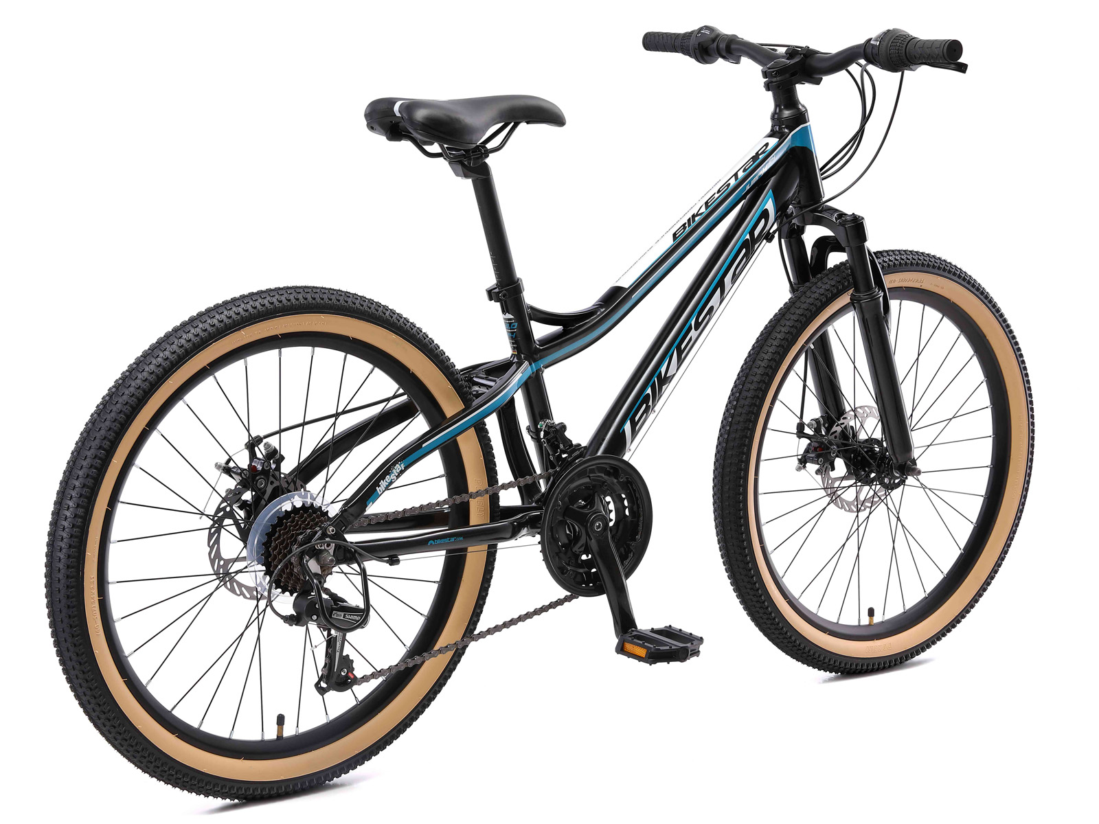 ** Prima mountainbike ** Zeer stabiel aluminium frame voor dagelijks gebruik op de berg, in de stad of op school. Met een bandenmaat van 24 inch en framemaat 13 inch is hij geschikt voor jongens of meisjes, vanaf ca. 140cm. Met het 21-speed Shimano derailleur-systeem met bijna naadloze schakeling kun je elke situatie aan. De bijzonder gripvaste schijfremmen aan de voor- en achterkant zorgen voor de nodige controle. De fiets heeft een geveerde voorvork met 55 mm veerweg. ** Bikestar kwaliteit ** Bikestar is gespecialiseerd in de productie van hoogwaardige fietsen die perfect op hun taak berekend zijn. Daarom worden alleen hoogwaardige componenten gebruikt, die bijdragen aan de veiligheid en duurzaamheid van de fiets. De fiets wordt 90%25 compleet gemonteerd afgeleverd. U dient zelf nog de pedalen, zadel en het voorwiel te monteren. U doet er goed aan de fiets voor het eerste gebruik door een fietsenmaker te laten controleren en de fiets om de zoveel maanden een onderhoudsbeurt te laten geven voor een lang en veilig gebruik. Bikestar staat al tien jaar voor een productontwerp dat de harten van kinderen inspireert. Met zijn merken BIKESTAR, STAR-SCOOTER en STAR-SKATEBOARDS heeft het bedrijf een reusachtig assortiment kindervoertuigen beschikbaar. De firma overtuigt door snelle levering en permanente beschikbaarheid van reserveonderdelen. ** Specificaties ** – Leeftijd: 10-13 jaar (vanaf 140cm lengte) – Zadelhoogte: ca. 67-77 cm – Stuurhoogte: ca. 87-89 cm – Gewicht: 12 Kg – Wielmaat 24 inch – Framehoogte: 13 inch (33 cm) – Versnellingen: 21 (Shimano) – Framemateriaal: 6061 aluminium – Geveerde voorvork met 55 mm veerweg – Derailleur: Shimano Tourney RD-TY300 – Schakelaar: Shimano draaigreep – Cassette: Shimano MF-TZ500 – Remmen: schijfremmen – Ketting: Shimano TZ-21 – Max. toegestaan gewicht: 65 Kg – 90%25 voorgemonteerd