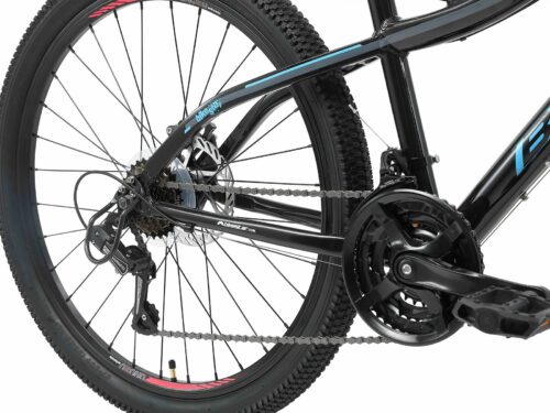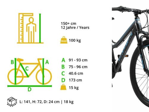 **Prima mountainbike** Zeer stabiel aluminium frame voor dagelijks gebruik op de berg, in de stad of op school. Met een bandenmaat van 26 inch en framemaat 16 inch is hij geschikt voor jongens, meisjes of volwassenen van ca. 150 tot 165cm. Met het 21-speed Shimano derailleur-systeem met bijna naadloze schakeling kun je elke situatie aan. Mechanische schijfremmen aan de voor- en achterkant zorgen voor de nodige controle. De fiets heeft een geveerde voorvork met 55 mm veerweg. **Bikestar kwaliteit** Bikestar is gespecialiseerd in de productie van hoogwaardige fietsen die perfect op hun taak berekend zijn. Daarom worden alleen hoogwaardige componenten gebruikt, die bijdragen aan de veiligheid en duurzaamheid van de fiets. De fiets wordt 90%25 compleet gemonteerd afgeleverd. U dient zelf nog de pedalen, zadel en het voorwiel te monteren. U doet er goed aan de fiets voor het eerste gebruik door een fietsenmaker te laten controleren en de fiets om de zoveel maanden een onderhoudsbeurt te laten geven voor een lang en veilig gebruik. **Specificaties** – Vanaf ca 150 cm lengte (12 jaar) – Zadelhoogte: 75-96 cm – Stuurhoogte: 91-93 cm – Framehoogte: 16 inch / 41 cm – Versnellingen: 21 (Shimano derailleur) – Framemateriaal: 6061 aluminium – Geveerde voorvork met 55mm veerweg – Remmen: schijfremmen – Ketting: KMC – Banden: 26 x 2.10 – Gewicht: 15 kg – Max. toegestaan gewicht: 100 kg – 90%25 voorgemonteerd, circa 15 minuten montage vereist