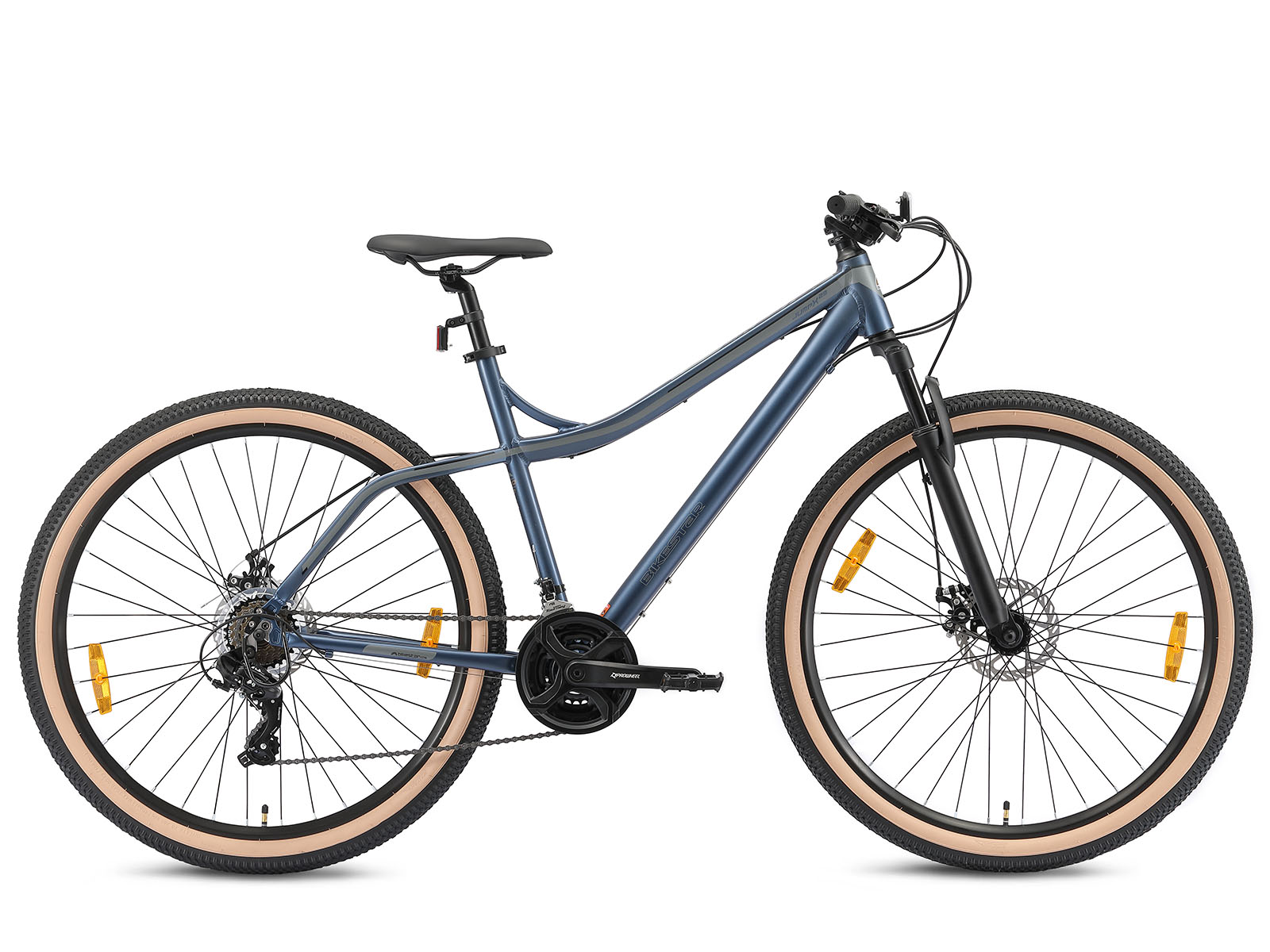 **Prima mountainbike** Zeer stabiel aluminium frame voor dagelijks gebruik op de berg, in de stad of op school. Met een bandenmaat van 29 inch en framemaat 18 inch is hij geschikt voor jongens, meisjes of volwassenen vanaf ca. 170cm. Met het 21-speed Shimano derailleur-systeem met bijna naadloze schakeling kun je elke situatie aan. Mechanische schijfremmen aan de voor- en achterkant zorgen voor de nodige controle. De fiets heeft een geveerde voorvork met 55 mm veerweg. **Bikestar kwaliteit** Bikestar is gespecialiseerd in de productie van hoogwaardige fietsen die perfect op hun taak berekend zijn. Daarom worden alleen hoogwaardige componenten gebruikt, die bijdragen aan de veiligheid en duurzaamheid van de fiets. De fiets wordt 90%25 compleet gemonteerd afgeleverd. U dient zelf nog de pedalen, zadel en het voorwiel te monteren. U doet er goed aan de fiets voor het eerste gebruik door een fietsenmaker te laten controleren en de fiets om de zoveel maanden een onderhoudsbeurt te laten geven voor een lang en veilig gebruik. **Specificaties** – Vanaf ca 170 cm lengte (15 jaar) – Zadelhoogte: 82-103 cm – Stuurhoogte: 97-99 cm – Framehoogte: 18 inch / 46 cm – Versnellingen: 21 (Shimano derailleur) – Framemateriaal: 6061 aluminium – Geveerde voorvork met 55mm veerweg – Remmen: schijfremmen – Banden: 29 x 2.10 – Gewicht: 17 kg – Max. toegestaan gewicht: 100 kg – 90%25 voorgemonteerd, circa 15 minuten montage vereist
