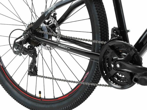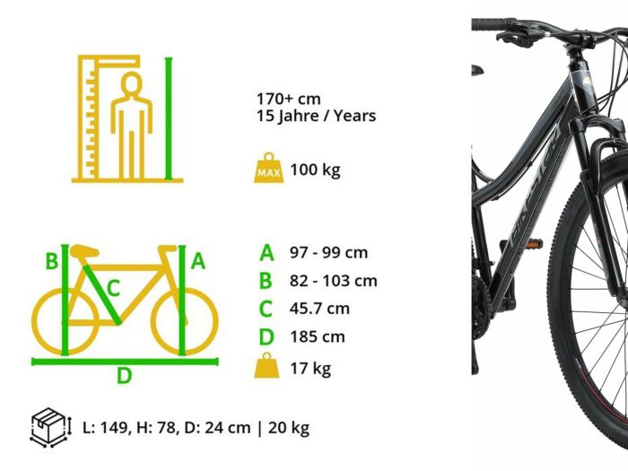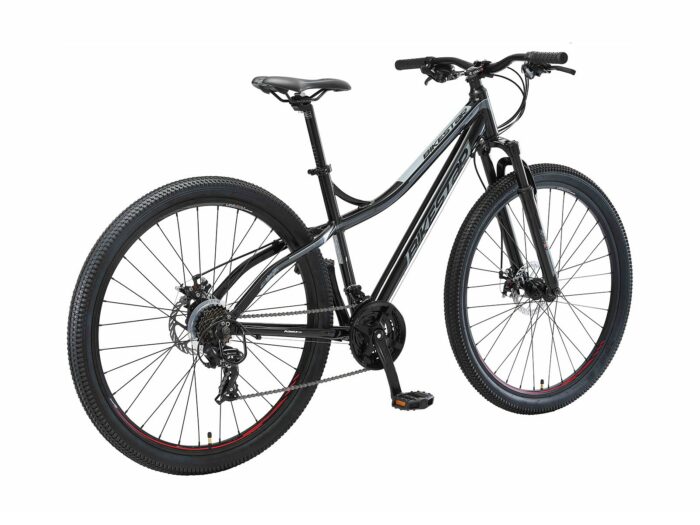 **Prima mountainbike** Zeer stabiel aluminium frame voor dagelijks gebruik op de berg, in de stad of op school. Met een bandenmaat van 29 inch en framemaat 18 inch is hij geschikt voor jongens, meisjes of volwassenen vanaf ca. 170cm. Met het 21-speed Shimano derailleur-systeem met bijna naadloze schakeling kun je elke situatie aan. Mechanische schijfremmen aan de voor- en achterkant zorgen voor de nodige controle. De fiets heeft een geveerde voorvork met 55 mm veerweg. **Bikestar kwaliteit** Bikestar is gespecialiseerd in de productie van hoogwaardige fietsen die perfect op hun taak berekend zijn. Daarom worden alleen hoogwaardige componenten gebruikt, die bijdragen aan de veiligheid en duurzaamheid van de fiets. De fiets wordt 90%25 compleet gemonteerd afgeleverd. U dient zelf nog de pedalen, zadel en het voorwiel te monteren. U doet er goed aan de fiets voor het eerste gebruik door een fietsenmaker te laten controleren en de fiets om de zoveel maanden een onderhoudsbeurt te laten geven voor een lang en veilig gebruik. **Specificaties** – Vanaf ca 170 cm lengte (15 jaar) – Zadelhoogte: 82-103 cm – Stuurhoogte: 97-99 cm – Framehoogte: 18 inch / 46 cm – Versnellingen: 21 (Shimano derailleur) – Framemateriaal: 6061 aluminium – Geveerde voorvork met 55mm veerweg – Remmen: schijfremmen – Banden: 29 x 2.10 – Gewicht: 17 kg – Max. toegestaan gewicht: 100 kg – 90%25 voorgemonteerd, circa 15 minuten montage vereist