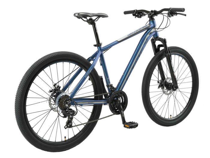 **Prima mountainbike** Zeer stabiel aluminium frame voor dagelijks gebruik op de berg, in de stad of op school. Met een bandenmaat van 27,5 inch en framemaat 18 inch is hij geschikt voor jongens, meisjes of volwassenen vanaf ca 170 cm. Met het 21-speed Shimano derailleur-systeem met bijna naadloze schakeling kun je elke situatie aan. Mechanische schijfremmen aan de voor- en achterkant zorgen voor de nodige controle. De fiets heeft een geveerde voorvork met 55 mm veerweg. **Bikestar kwaliteit** Bikestar is gespecialiseerd in de productie van hoogwaardige fietsen die perfect op hun taak berekend zijn. Daarom worden alleen hoogwaardige componenten gebruikt, die bijdragen aan de veiligheid en duurzaamheid van de fiets. De fiets wordt 90%25 compleet gemonteerd afgeleverd. U dient zelf nog de pedalen, zadel en het voorwiel te monteren. U doet er goed aan de fiets voor het eerste gebruik door een fietsenmaker te laten controleren en de fiets om de zoveel maanden een onderhoudsbeurt te laten geven voor een lang en veilig gebruik. **Specificaties** – Vanaf ca 170 cm lengte (15 jaar) – Zadelhoogte: 82-103 cm – Stuurhoogte: 97-99 cm – Framehoogte: 18 inch / 46 cm – Versnellingen: 21 (Shimano derailleur)- Framemateriaal: 6061 aluminium – Geveerde voorvork met 55mm veerweg – Remmen: schijfremmen – Banden: 27.5 x 2.10 – Gewicht: 16 kg – Max. toegestaan gewicht: 100 kg – 90%25 voorgemonteerd, circa 15 minuten montage vereist
