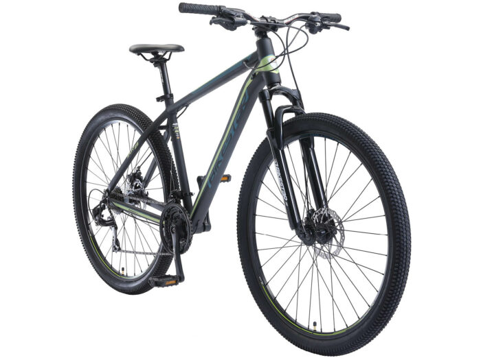 **Prima mountainbike** Zeer stabiel aluminium frame voor dagelijks gebruik op de berg, in de stad of op school. Met een bandenmaat van 29 inch en framemaat 19 inch is hij geschikt voor jongens, meisjes of volwassenen vanaf ca. 175cm. Met het 21-speed Shimano derailleur-systeem met bijna naadloze schakeling kun je elke situatie aan. Mechanische schijfremmen aan de voor- en achterkant zorgen voor de nodige controle. De fiets heeft een geveerde voorvork met 55 mm veerweg. **Bikestar kwaliteit** Bikestar is gespecialiseerd in de productie van hoogwaardige fietsen die perfect op hun taak berekend zijn. Daarom worden alleen hoogwaardige componenten gebruikt, die bijdragen aan de veiligheid en duurzaamheid van de fiets. De fiets wordt 90%25 compleet gemonteerd afgeleverd. U dient zelf nog de pedalen, zadel en het voorwiel te monteren. U doet er goed aan de fiets voor het eerste gebruik door een fietsenmaker te laten controleren en de fiets om de zoveel maanden een onderhoudsbeurt te laten geven voor een lang en veilig gebruik. **Specificaties** – Vanaf ca 175 cm lengte (15 jaar) – Zadelhoogte: 84-112 cm – Stuurhoogte: 99-101 cm – Framehoogte: 19 inch / 48 cm – Versnellingen: 21 (Shimano derailleur) – Framemateriaal: 6061 aluminium – Geveerde voorvork met 55mm veerweg – Remmen: schijfremmen – Banden: 29 x 2.10 – Gewicht: 18,5 kg – Max. toegestaan gewicht: 100 kg – 90%25 voorgemonteerd, circa 15 minuten montage vereist