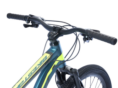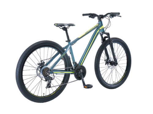**Prima mountainbike** Zeer stabiel aluminium frame voor dagelijks gebruik op de berg, in de stad of op school. Met een bandenmaat van 27,5 inch en framemaat 16 inch is hij geschikt voor jongens, meisjes of volwassenen van ca. 158 tot 165cm. Met het 21-speed Shimano derailleur-systeem met bijna naadloze schakeling kun je elke situatie aan. Mechanische schijfremmen aan de voor- en achterkant zorgen voor de nodige controle. De fiets heeft een geveerde voorvork met 90 mm veerweg. **Bikestar kwaliteit** Bikestar is gespecialiseerd in de productie van hoogwaardige fietsen die perfect op hun taak berekend zijn. Daarom worden alleen hoogwaardige componenten gebruikt, die bijdragen aan de veiligheid en duurzaamheid van de fiets. De fiets wordt 90%25 compleet gemonteerd afgeleverd. U dient zelf nog de pedalen, zadel en het voorwiel te monteren. U doet er goed aan de fiets voor het eerste gebruik door een fietsenmaker te laten controleren en de fiets om de zoveel maanden een onderhoudsbeurt te laten geven voor een lang en veilig gebruik. **Specificaties** – Vanaf ca 158cm lengte (13 jaar) – Zadelhoogte: 76-100 cm – Stuurhoogte: 97-99 cm – Framehoogte: 16 inch / 41 cm – Versnellingen: 21 (Shimano derailleur) – Framemateriaal: 6061 aluminium – Geveerde voorvork met 90mm veerweg – Remmen: schijfremmen – Ketting: KMC – Banden: 27,5 x 2.10 – Gewicht: 18 kg – Max. toegestaan gewicht: 100 kg – 90%25 voorgemonteerd, circa 15 minuten montage vereist
