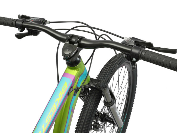 **Prima mountainbike** Zeer stabiel aluminium frame voor dagelijks gebruik op de berg, in de stad of op school. Met een bandenmaat van 29 inch en framemaat 17 inch is hij geschikt voor jongens, meisjes of volwassenen van ca. 165 tot 175cm. Met het 21-speed Shimano derailleur-systeem met bijna naadloze schakeling kun je elke situatie aan. Mechanische schijfremmen aan de voor- en achterkant zorgen voor de nodige controle. De fiets heeft een geveerde voorvork met 90 mm veerweg. **Bikestar kwaliteit** Bikestar is gespecialiseerd in de productie van hoogwaardige fietsen die perfect op hun taak berekend zijn. Daarom worden alleen hoogwaardige componenten gebruikt, die bijdragen aan de veiligheid en duurzaamheid van de fiets. De fiets wordt 90%25 compleet gemonteerd afgeleverd. U dient zelf nog de pedalen, zadel en het voorwiel te monteren. U doet er goed aan de fiets voor het eerste gebruik door een fietsenmaker te laten controleren en de fiets om de zoveel maanden een onderhoudsbeurt te laten geven voor een lang en veilig gebruik. **Specificaties** – Vanaf ca 165cm lengte (13 jaar) – Zadelhoogte: 79-107 cm – Stuurhoogte: 99-101 cm – Framehoogte: 17 inch / 43 cm – Versnellingen: 21 (Shimano derailleur) – Framemateriaal: 6061 aluminium – Geveerde voorvork met 90mm veerweg – Remmen: schijfremmen – Ketting: KMC – Banden: 29 x 2.10 – Gewicht: 18,5 kg – Max. toegestaan gewicht: 100 kg – 90%25 voorgemonteerd, circa 15 minuten montage vereist