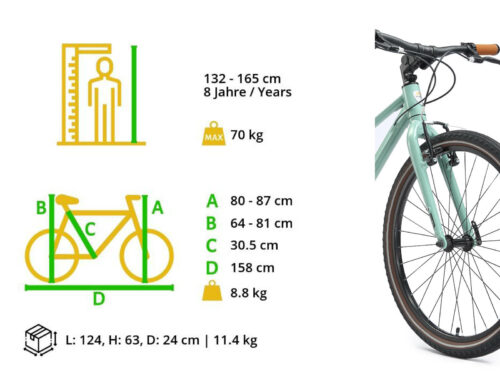 **Lichtgewicht** De 24 inch kinderfietsen in deze Bikestar LW serie zijn met ca 8.8 kilo bijzonder licht van gewicht. Het sterke en sportieve aluminium frame is echter zeer stabiel en veilig en gevormd naar de ergonomie van een kinderlichaam. **Het beste voor uw kind** Bikestar produceert al jarenlang prima kinderfietsen die voldoen aan alle wettelijke eisen. Bikestar gebruikt alleen maar gecertificeerde en gifvrije materialen. Een prettig idee, omdat u vanzelfsprekend alleen het beste wil voor uw (klein)kind. **Geschikt vanaf 8 jaar** Dit model, met 24 inch wielen en een framehoogte van 30 cm, is geschikt voor kinderen vanaf 8 jaar of een lichaamslengte vanaf 132 cm. Omdat het stuur en het zadel zowel in hoogte als hoek verstelbaar zijn kan het kind er geruime tijd van gebruik maken, ook na een groeispurt. **Speciale trapas** Dit fietsje is voorzien van een bijzondere ISO-trapas, waardoor het trappen heel licht gaat. Trappen gaat zo heel licht, het gaat bijna vanzelf! Dankzij de 8 versnellingen derailleur en het lage gewicht is deze fiets een heel fijne fiets voor heuvelachtig terrein, of op plaatsen waar je vaak met harde wind te maken hebt. **Een volwaardige fiets** Omdat deze fietsjes zeer licht van gewicht zijn en een lichtlopende trapas hebben, is fietsen hiermee een groot feest. De prachtige afwerking en stoere uitstraling van dit model, met dikke bandjes, krachtige velgremmen en Shimano 8 versnellingen derailleur nodigen uit om er elke dag met veel plezier op rond te rijden. Een beetje oefenen en het schakelen gaat als vanzelf. Gun je kind het genoegen van een stoere, echte fiets waarmee je snelheid kunt ervaren.