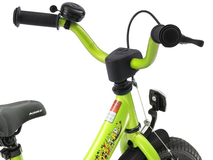 ** Vakmanschap ** Dankzij aluminium onderdelen is onze fiets bijzonder licht en dankzij de precieze afwerking ook extreem stabiel. Uiteraard voldoet de fiets aan de wettelijke normen en met een nauwkeurige eindcontrole garanderen wij een allround veilige en stabiele kinderfiets ** Jong geleerd ** Deze fiets is geschikt voor kinderen vanaf 3 jaar en een lengte van 93cm. Door het in hoogte en helling verstelbare stuur en zadel kunnen kinderen lang fietsen – ook na een groeispurt. De ergonomie tussen zadel en stuur is zodanig dat kinderen altijd de juiste houding op de fiets aannemen, wat een gezonde ontwikkeling bevorderd. ** Specificaties ** – Leeftijd: vanaf ca. 3 jaar (95cm lengte) – Zadelhoogte: ca. 47-55 cm – Stuurhoogte: ca. 60-68 cm – Gewicht: 7,9 Kg – Stevig stalen frame met slagvaste laklaag – Stuur met kogellagers, in hoogte en hellingshoek instelbaar – Ergonomisch gevormd kinderzadel, in hoogte en hellingshoek instelbaar – Met terugtraprem – Gecertificeerde, gifvrije veiligheidshandgrepen – Voorwielrem met op kinderhandjes aangepaste, instelbare greep – Volledig gesloten kettingkast en trapas met kogellagers – Reflectoren aan voor- en achterzijde en aan de pedalen – 30.5cm (12 inch) Luchtbanden op hoogwaardige aluminium velgen – 95%25 voorgemonteerd, in circa 15 minuten af te monteren