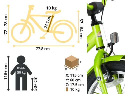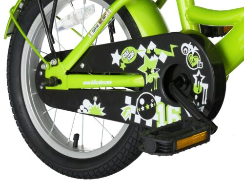 ** Vakmanschap ** Dankzij aluminium onderdelen is onze fiets bijzonder licht en dankzij de precieze afwerking ook extreem stabiel. Uiteraard voldoet de fiets aan de wettelijke normen en met een nauwkeurige eindcontrole garanderen wij een allround veilige en stabiele kinderfiets. Voorzien van een afgedichte ISO- trapas waardoor de fiets altijd gemakkelijk trapt. ** Jong geleerd ** Deze fiets is geschikt voor kinderen vanaf 4 jaar en een lengte van 110cm. Door het in hoogte en helling verstelbare stuur en zadel kunnen kinderen lang fietsen – ook na een groeispurt. De ergonomie tussen zadel en stuur is zodanig dat kinderen altijd de juiste houding op de fiets aannemen, wat een gezonde ontwikkeling bevorderd. ** Specificaties ** – Leeftijd: vanaf ca. 4 jaar (110cm lengte) – Zadelhoogte: ca. 57-64 cm – Stuurhoogte: ca. 70-78 cm – Gewicht: 10 Kg – Hoogwaardige, lichtlopende trapas zodat de fiets niet zwaar trapt – Stevig stalen frame met slagvaste laklaag – Stuur met kogellagers, in hoogte en hellingshoek instelbaar – Ergonomisch gevormd kinderzadel, in hoogte en hellingshoek instelbaar – Met terugtraprem – Gecertificeerde, gifvrije veiligheidshandgrepen – Voorwielrem met op kinderhandjes aangepaste, instelbare greep – Volledig gesloten kettingkast – Reflectoren aan voor- en achterzijde en aan de pedalen – 40.6cm (16 inch) Luchtbanden op hoogwaardige aluminium velgen – 95%25 voorgemonteerd, in circa 15 minuten af te monteren
