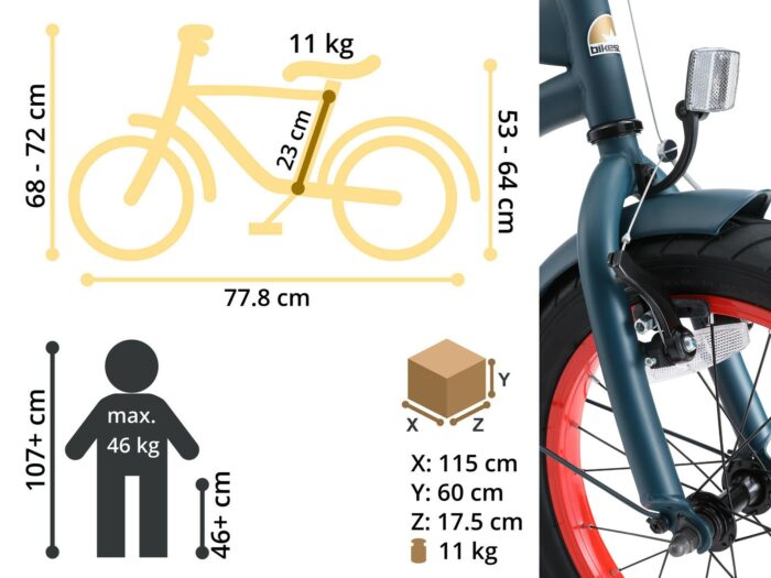 **Jong geleerd** Deze fiets is geschikt voor kinderen vanaf 4 jaar en een lengte van 110cm. Door het in hoogte en helling verstelbare stuur en zadel kunnen kinderen lang fietsen – ook na een groeispurt. De ergonomie tussen zadel en stuur is zodanig dat kinderen altijd de juiste houding op de fiets aannemen, wat een gezonde ontwikkeling bevorderd. **Vakmanschap** Dankzij aluminium onderdelen is onze fiets bijzonder licht en dankzij de precieze afwerking ook extreem stabiel. Uiteraard voldoet de fiets aan de wettelijke normen en met een nauwkeurige eindcontrole garanderen wij een allround veilige en stabiele kinderfiets. Voorzien van een afgedichte ISO- trapas waardoor de fiets altijd gemakkelijk trapt. **Specificaties** – Leeftijd: vanaf ca. 4 jaar (110cm lengte) – Zadelhoogte: ca. 56-66 cm – Stuurhoogte: ca. 74-78 cm – Gewicht: 11 Kg – Hoogwaardige, lichtlopende trapas zodat de fiets niet zwaar trapt – Stevig stalen frame met slagvaste laklaag – Stuur met kogellagers, in hoogte en hellingshoek instelbaar – Ergonomisch gevormd kinderzadel, in hoogte en hellingshoek instelbaar – Met terugtraprem – Gecertificeerde, gifvrije veiligheidshandgrepen – Voorwielrem met op kinderhandjes aangepaste, instelbare greep – Volledig gesloten kettingkast – Reflectoren aan voor- en achterzijde en aan de pedalen – 40.6cm (16 inch) Luchtbanden op hoogwaardige aluminium velgen – 95%25 voorgemonteerd, in circa 15 minuten af te monteren