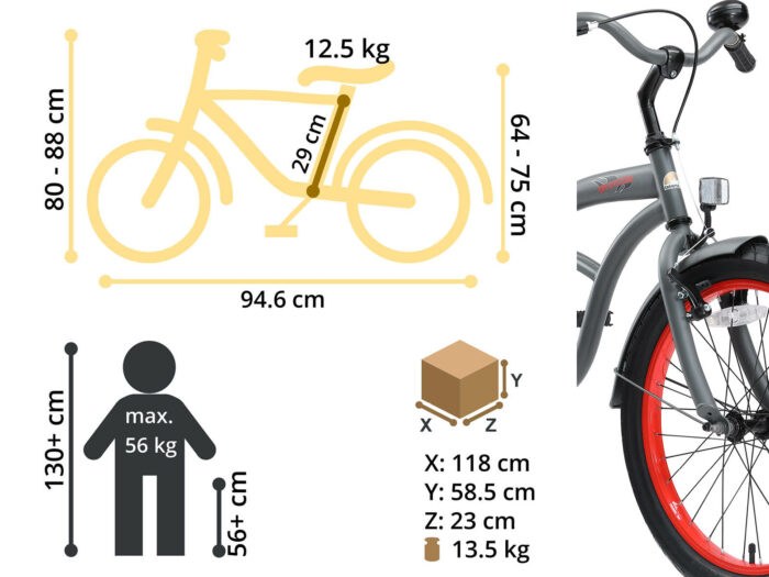 Bikestar kinderfiets Cruiser 20 inch grijs