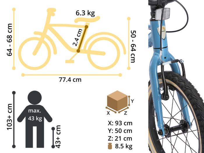 **Lichtgewicht** De kinderfietsen in deze Bikestar LW serie zijn met ca 6.3 kilo bijzonder licht van gewicht. Het sterke en sportieve aluminium frame is echter zeer stabiel en veilig en gevormd naar de ergonomie van een kinderlichaam. **Het beste voor uw kind** Bikestar produceert al jarenlang prima kinderfietsen die voldoen aan alle wettelijke eisen. Bikestar gebruikt alleen maar gecertificeerde en gifvrije materialen. Een prettig idee, omdat u vanzelfsprekend alleen het beste wil voor uw (klein)kind. **Geschikt vanaf 4 jaar** Dit model, met 16 inch wielen en een framehoogte van 24 cm, is geschikt voor kinderen vanaf 4 jaar of een lichaamslengte vanaf 103 cm. Omdat het stuur en het zadel zowel in hoogte als hoek verstelbaar zijn kan het kind er geruime tijd van gebruik maken, ook na een groeispurt. **Speciale trapas** Dit fietsje is voorzien van een bijzondere ISO-trapas, waardoor het trappen heel licht gaat. Geen frustraties bij de kleintjes omdat ze de trappers niet rond kunnen draaien, het gaat bijna vanzelf! **Spelenderwijs leren fietsen** Omdat deze fietsjes zeer licht van gewicht zijn en een lichtlopende trapas hebben, leert het kind spelenderwijs fietsen. De prachtige afwerking en stoere uitstraling van dit model, met dikke bandjes, krachtige velgremmen en één versnelling nodigen uit om er elke dag met veel plezier op rond te rijden.