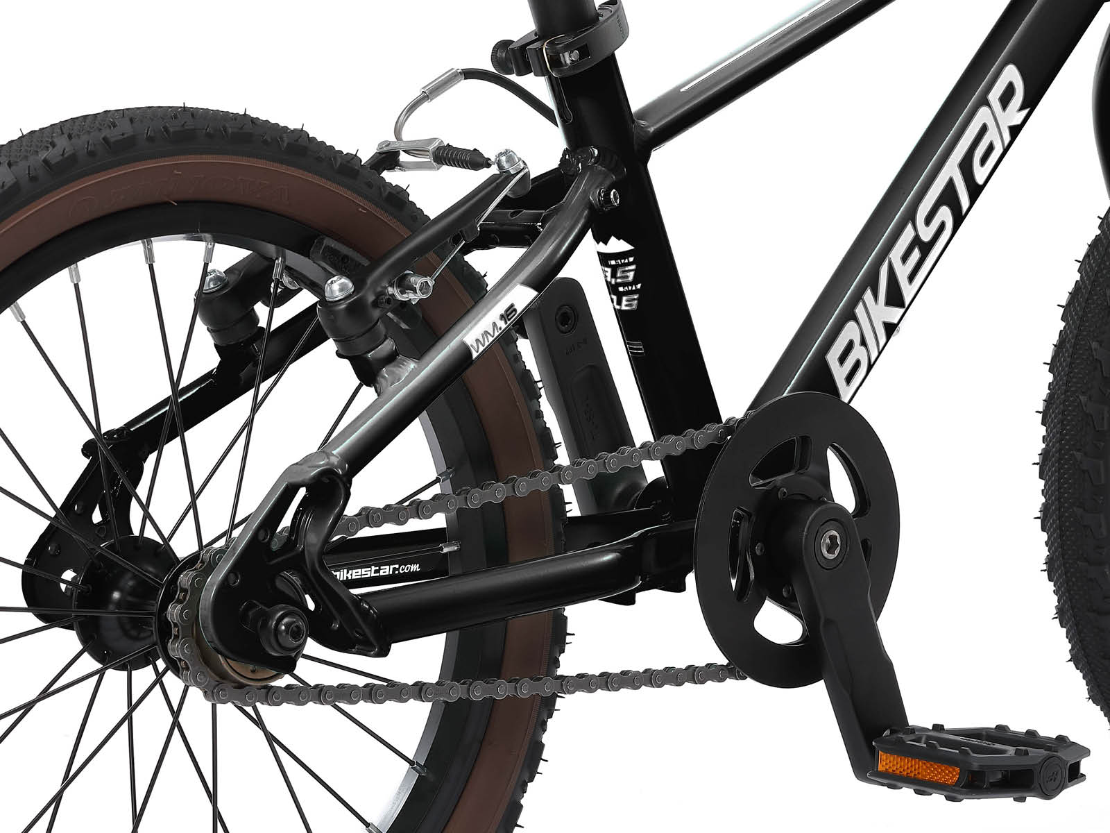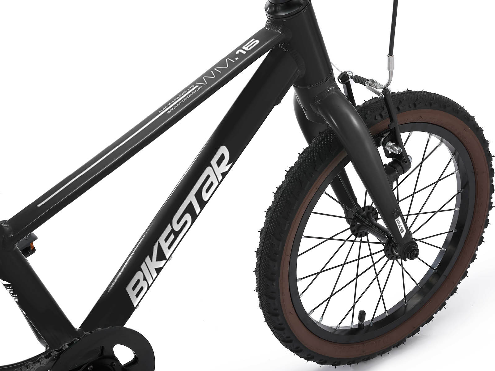 **Lichtgewicht** De kinderfietsen in deze Bikestar LW serie zijn met ca 6.3 kilo bijzonder licht van gewicht. Het sterke en sportieve aluminium frame is echter zeer stabiel en veilig en gevormd naar de ergonomie van een kinderlichaam. **Het beste voor uw kind** Bikestar produceert al jarenlang prima kinderfietsen die voldoen aan alle wettelijke eisen. Bikestar gebruikt alleen maar gecertificeerde en gifvrije materialen. Een prettig idee, omdat u vanzelfsprekend alleen het beste wil voor uw (klein)kind. **Geschikt vanaf 4 jaar** Dit model, met 16 inch wielen en een framehoogte van 24 cm, is geschikt voor kinderen vanaf 4 jaar of een lichaamslengte vanaf 103 cm. Omdat het stuur en het zadel zowel in hoogte als hoek verstelbaar zijn kan het kind er geruime tijd van gebruik maken, ook na een groeispurt. **Speciale trapas** Dit fietsje is voorzien van een bijzondere ISO-trapas, waardoor het trappen heel licht gaat. Geen frustraties bij de kleintjes omdat ze de trappers niet rond kunnen draaien, het gaat bijna vanzelf! **Spelenderwijs leren fietsen** Omdat deze fietsjes zeer licht van gewicht zijn en een lichtlopende trapas hebben, leert het kind spelenderwijs fietsen. De prachtige afwerking en stoere uitstraling van dit model, met dikke bandjes, krachtige velgremmen en één versnelling nodigen uit om er elke dag met veel plezier op rond te rijden.
