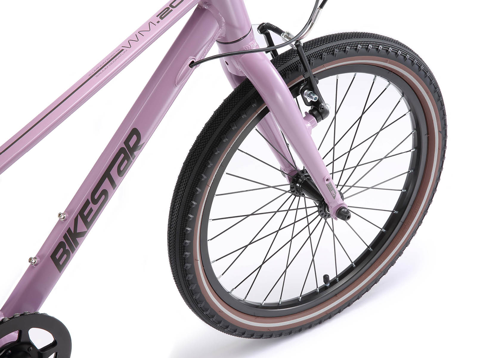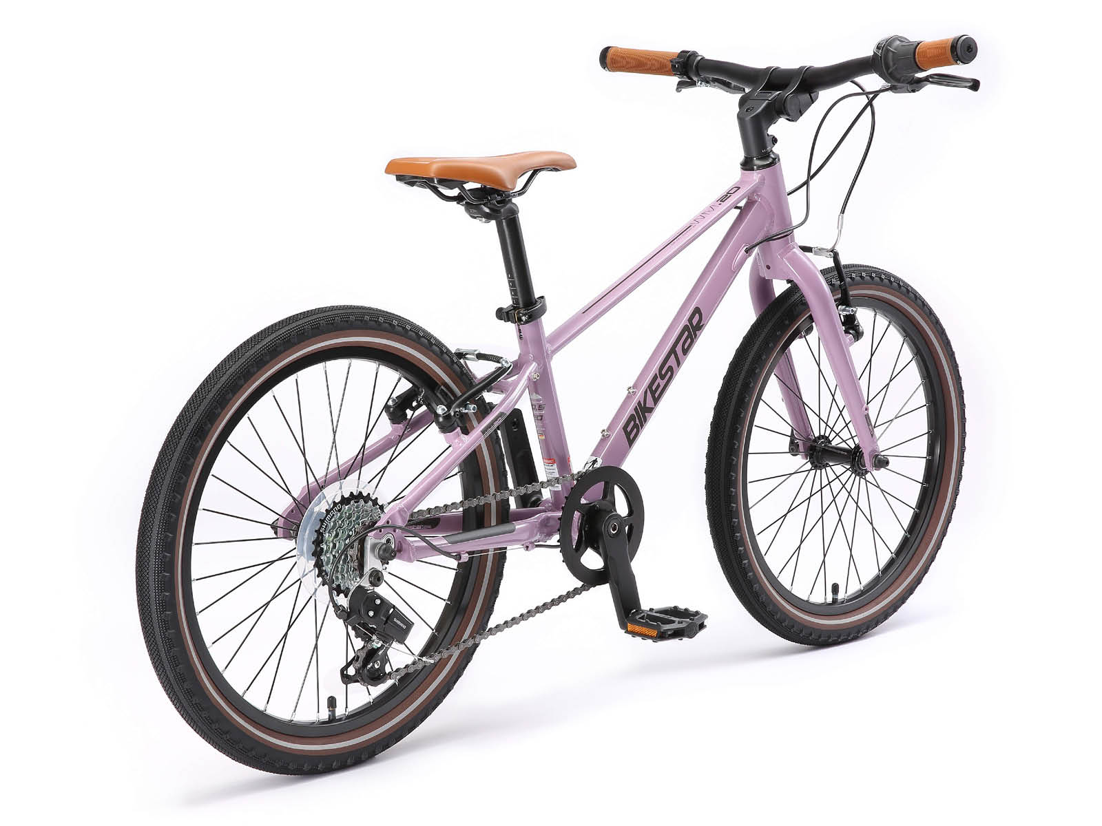 **Lichtgewicht** De 20 inch kinderfietsen in deze Bikestar LW serie zijn met ca 7.8 kilo bijzonder licht van gewicht. Het sterke en sportieve aluminium frame is echter zeer stabiel en veilig en gevormd naar de ergonomie van een kinderlichaam. **Het beste voor uw kind** Bikestar produceert al jarenlang prima kinderfietsen die voldoen aan alle wettelijke eisen. Bikestar gebruikt alleen maar gecertificeerde en gifvrije materialen. Een prettig idee, omdat u vanzelfsprekend alleen het beste wil voor uw (klein)kind. **Geschikt vanaf 6 jaar** Dit model, met 20 inch wielen en een framehoogte van 27 cm, is geschikt voor kinderen vanaf 6 jaar of een lichaamslengte vanaf 117 cm. Omdat het stuur en het zadel zowel in hoogte als hoek verstelbaar zijn kan het kind er geruime tijd van gebruik maken, ook na een groeispurt. **Speciale trapas** Dit fietsje is voorzien van een bijzondere ISO-trapas, waardoor het trappen heel licht gaat. Geen frustraties bij de kleintjes omdat ze de trappers niet rond kunnen draaien, het gaat bijna vanzelf! **Spelenderwijs echt leren fietsen** Omdat deze fietsjes zeer licht van gewicht zijn en een lichtlopende trapas hebben, leert het kind spelenderwijs fietsen. De prachtige afwerking en stoere uitstraling van dit model, met dikke bandjes, krachtige velgremmen en 7 versnellingen derailleur nodigen uit om er elke dag met veel plezier op rond te rijden. Het kind zal op deze fiets vanzelf leren schakelen.