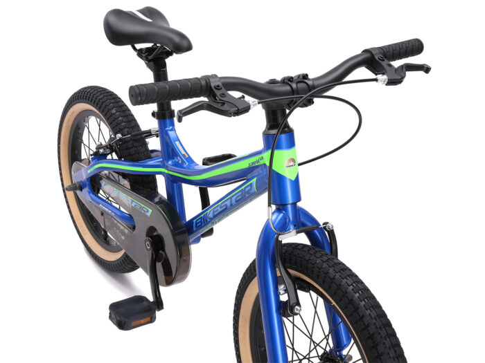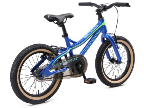 ** Vakmanschap ** Dankzij aluminium onderdelen is onze fiets bijzonder licht en dankzij de precieze afwerking ook extreem stabiel. Uiteraard voldoet de fiets aan de wettelijke normen en met een nauwkeurige eindcontrole garanderen wij een allround veilige en stabiele kinderfiets. Superlichte mountainbike met 1 versnelling, velgremmen en kettingkast ** Jong geleerd ** Deze fiets is geschikt voor kinderen vanaf 4 jaar en een lengte van 110cm. Door het in hoogte en helling verstelbare stuur en zadel kunnen kinderen lang fietsen – ook na een groeispurt. De ergonomie tussen zadel en stuur is zodanig dat kinderen altijd de juiste houding op de fiets aannemen, wat een gezonde ontwikkeling bevorderd. ** Specificaties ** – Leeftijd: vanaf ca. 4-5 jaar (110cm lengte) – Zadelhoogte: ca. 53-65 cm – Stuurhoogte: ca. 72-74 cm – Gewicht: 11 Kg – Licht maar stabiel aluminium frame met lage instap – Water- en stofdichte trapsas met vierkante CrMo as – Premium Design crank zoals op de duurste fietsen – 40.6 cm (16 inch) Luchtbanden op hoogwaardige aluminium velgen – Slagvaste meerlaagse lak – Makkelijk sturen met in hoogte en hellingshoek instelbaar stuur – Ergonomisch in hoogte en hellingshoek instelbaar zadel – V-brakes voor en achter met op kinderhanden aangepaste remgrepen