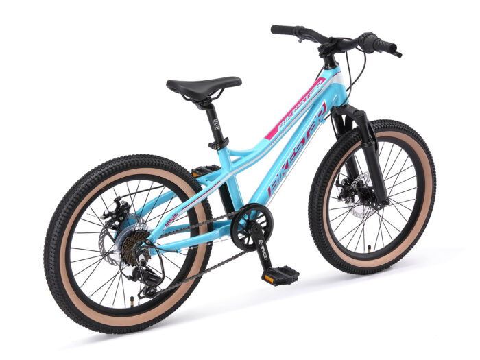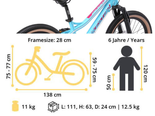 **Een veilige mountainbike** Zeer stabiel aluminium frame voor dagelijks gebruik op de berg, in de stad of op school. Met een bandenmaat van 20 inch en framemaat 11 inch is hij geschikt voor jongens of meisjes, vanaf ca. 125cm. Met het 7-speed Shimano derailleur-systeem met bijna naadloze schakeling kun je elke situatie aan. De bijzonder gripvaste V-brakes aan de voor- en achterkant zorgen voor de nodige controle. **Bikestar kwaliteit** Bikestar is gespecialiseerd in de productie van hoogwaardige fietsen die perfect op hun taak berekend zijn. Daarom worden alleen hoogwaardige componenten gebruikt, die bijdragen aan de veiligheid en duurzaamheid van de fiets. De fiets wordt 90%25 compleet gemonteerd afgeleverd. U dient zelf nog de pedalen, zadel en het voorwiel te monteren. U doet er goed aan de fiets voor het eerste gebruik door een fietsenmaker te laten controleren en de fiets om de zoveel maanden een onderhoudsbeurt te laten geven voor een lang en veilig gebruik. Bikestar staat al tien jaar voor een productontwerp dat de harten van kinderen inspireert. Met zijn merken BIKESTAR, STAR-SCOOTER en STAR-SKATEBOARDS heeft het bedrijf een reusachtig assortiment kindervoertuigen beschikbaar. De firma overtuigt door snelle levering en permanente beschikbaarheid van reserveonderdelen. **Specificaties** – Leeftijd: 6-9 jaar (vanaf 125cm lengte) – Zadelhoogte: ca. 58-68 cm – Stuurhoogte: ca. 75-77 cm – Gewicht: 13 Kg – Wielmaat 20 inch – Framehoogte: 11 inch (27,9 cm) – Versnellingen: 7 (Shimano) – Framemateriaal: 6061 aluminium – Geveerde voorvork met 55 mm veerweg – Derailleur: Shimano Tourney RD-TY 300 – Schakelaar: Shimano draaigreep – Remmen: schijfremmen – Ketting: KMC – Max. toegestaan gewicht: 50 Kg – 90%25 voorgemonteerd
