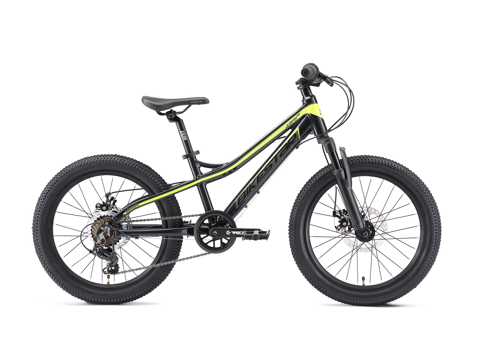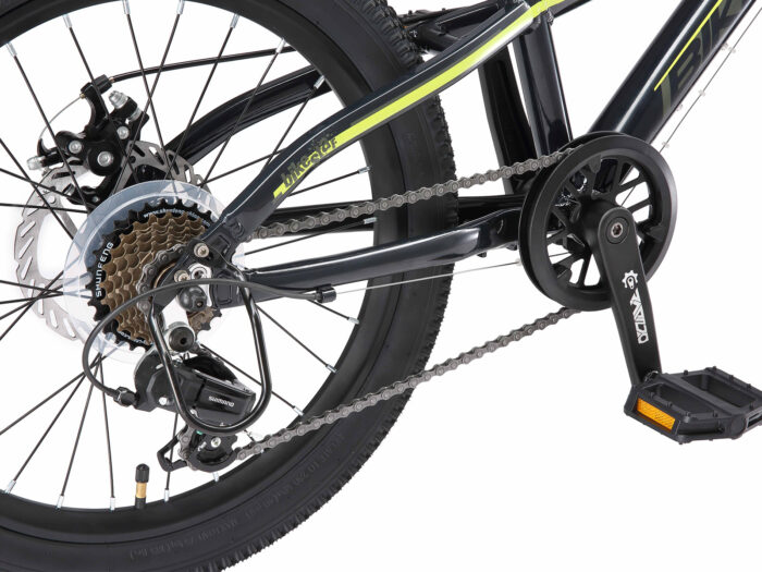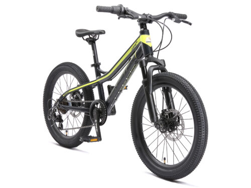 **Een veilige mountainbike** Zeer stabiel aluminium frame voor dagelijks gebruik op de berg, in de stad of op school. Met een bandenmaat van 20 inch en framemaat 11 inch is hij geschikt voor jongens of meisjes, vanaf ca. 125cm. Met het 7-speed Shimano derailleur-systeem met bijna naadloze schakeling kun je elke situatie aan. De bijzonder gripvaste V-brakes aan de voor- en achterkant zorgen voor de nodige controle. **Bikestar kwaliteit** Bikestar is gespecialiseerd in de productie van hoogwaardige fietsen die perfect op hun taak berekend zijn. Daarom worden alleen hoogwaardige componenten gebruikt, die bijdragen aan de veiligheid en duurzaamheid van de fiets. De fiets wordt 90%25 compleet gemonteerd afgeleverd. U dient zelf nog de pedalen, zadel en het voorwiel te monteren. U doet er goed aan de fiets voor het eerste gebruik door een fietsenmaker te laten controleren en de fiets om de zoveel maanden een onderhoudsbeurt te laten geven voor een lang en veilig gebruik. Bikestar staat al tien jaar voor een productontwerp dat de harten van kinderen inspireert. Met zijn merken BIKESTAR, STAR-SCOOTER en STAR-SKATEBOARDS heeft het bedrijf een reusachtig assortiment kindervoertuigen beschikbaar. De firma overtuigt door snelle levering en permanente beschikbaarheid van reserveonderdelen. **Specificaties** – Leeftijd: 6-9 jaar (vanaf 125cm lengte) – Zadelhoogte: ca. 58-68 cm – Stuurhoogte: ca. 75-77 cm – Gewicht: 13 Kg – Wielmaat 20 inch – Framehoogte: 11 inch (27,9 cm) – Versnellingen: 7 (Shimano) – Framemateriaal: 6061 aluminium – Geveerde voorvork met 55 mm veerweg – Derailleur: Shimano Tourney RD-TY 300 – Schakelaar: Shimano draaigreep – Remmen: schijfremmen – Ketting: KMC – Max. toegestaan gewicht: 50 Kg – 90%25 voorgemonteerd