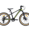 ** Een veilige mountainbike ** Zeer stabiel aluminium frame voor dagelijks gebruik op de berg, in de stad of op school. Met een bandenmaat van 20 inch en framemaat 11.5 inch is hij geschikt voor jongens of meisjes, vanaf ca. 115cm. Met het 7-speed Shimano derailleur-systeem met bijna naadloze schakeling kun je elke situatie aan. De bijzonder gripvaste V-brakes aan de voor- en achterkant zorgen voor de nodige controle. ** Bikestar kwaliteit ** Bikestar is gespecialiseerd in de productie van hoogwaardige fietsen die perfect op hun taak berekend zijn. Daarom worden alleen hoogwaardige componenten gebruikt, die bijdragen aan de veiligheid en duurzaamheid van de fiets. De fiets wordt 90%25 compleet gemonteerd afgeleverd. U dient zelf nog de pedalen, zadel en het voorwiel te monteren. U doet er goed aan de fiets voor het eerste gebruik door een fietsenmaker te laten controleren en de fiets om de zoveel maanden een onderhoudsbeurt te laten geven voor een lang en veilig gebruik. Bikestar staat al tien jaar voor een productontwerp dat de harten van kinderen inspireert. Met zijn merken BIKESTAR, STAR-SCOOTER en STAR-SKATEBOARDS heeft het bedrijf een reusachtig assortiment kindervoertuigen beschikbaar. De firma overtuigt door snelle levering en permanente beschikbaarheid van reserveonderdelen. ** Specificaties ** – Leeftijd: 6-9 jaar (vanaf 115cm lengte) – Zadelhoogte: ca. 58-77 cm – Stuurhoogte: ca. 75-77 cm – Gewicht: 13 Kg – Wielmaat 20 inch – Framehoogte: 11,5 inch (29,2 cm) – Versnellingen: 7 (Shimano) – Framemateriaal: 6061 aluminium – Geveerde voorvork met 90 mm veerweg – Derailleur: Shimano Tourney SL-RS25-7R – Schakelaar: Shimano RD-TY300 – Remmen: schijfrem – Cassette: Shimano MF-TZ500 – Ketting: Shimano TZ-21 – Max. toegestaan gewicht: 70 Kg – 90%25 voorgemonteerd