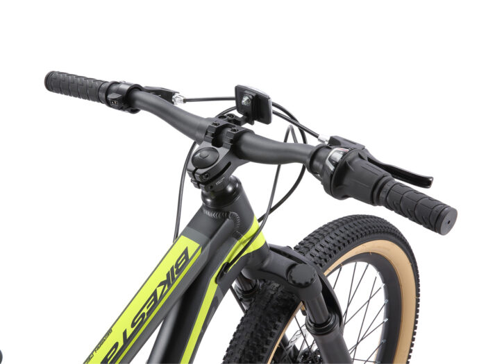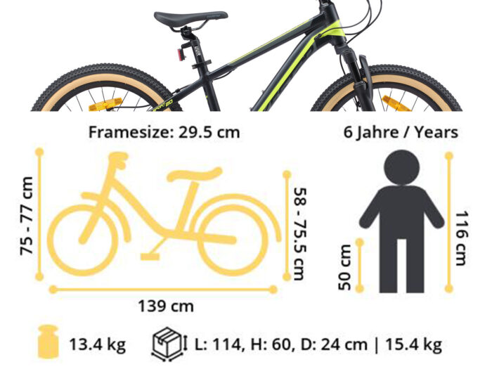 ** Een veilige mountainbike ** Zeer stabiel aluminium frame voor dagelijks gebruik op de berg, in de stad of op school. Met een bandenmaat van 20 inch en framemaat 11.5 inch is hij geschikt voor jongens of meisjes, vanaf ca. 115cm. Met het 7-speed Shimano derailleur-systeem met bijna naadloze schakeling kun je elke situatie aan. De bijzonder gripvaste V-brakes aan de voor- en achterkant zorgen voor de nodige controle. ** Bikestar kwaliteit ** Bikestar is gespecialiseerd in de productie van hoogwaardige fietsen die perfect op hun taak berekend zijn. Daarom worden alleen hoogwaardige componenten gebruikt, die bijdragen aan de veiligheid en duurzaamheid van de fiets. De fiets wordt 90%25 compleet gemonteerd afgeleverd. U dient zelf nog de pedalen, zadel en het voorwiel te monteren. U doet er goed aan de fiets voor het eerste gebruik door een fietsenmaker te laten controleren en de fiets om de zoveel maanden een onderhoudsbeurt te laten geven voor een lang en veilig gebruik. Bikestar staat al tien jaar voor een productontwerp dat de harten van kinderen inspireert. Met zijn merken BIKESTAR, STAR-SCOOTER en STAR-SKATEBOARDS heeft het bedrijf een reusachtig assortiment kindervoertuigen beschikbaar. De firma overtuigt door snelle levering en permanente beschikbaarheid van reserveonderdelen. ** Specificaties ** – Leeftijd: 6-9 jaar (vanaf 115cm lengte) – Zadelhoogte: ca. 58-77 cm – Stuurhoogte: ca. 75-77 cm – Gewicht: 13 Kg – Wielmaat 20 inch – Framehoogte: 11,5 inch (29,2 cm) – Versnellingen: 7 (Shimano) – Framemateriaal: 6061 aluminium – Geveerde voorvork met 90 mm veerweg – Derailleur: Shimano Tourney SL-RS25-7R – Schakelaar: Shimano RD-TY300 – Remmen: schijfrem – Cassette: Shimano MF-TZ500 – Ketting: Shimano TZ-21 – Max. toegestaan gewicht: 70 Kg – 90%25 voorgemonteerd