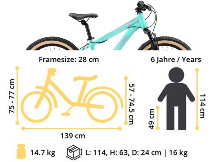 ** Een veilige mountainbike ** Zeer stevig stalen frame voor dagelijks gebruik op de berg, in de stad of op school. Met een bandenmaat van 20 inch en framemaat 11 inch is hij geschikt voor jongens of meisjes, vanaf ca. 114cm. Met het 7-speed Shimano derailleur-systeem met bijna naadloze schakeling kun je elke situatie aan. De bschijfremmen aan de voor- en achterkant zorgen voor prima remprestaties. ** Bikestar kwaliteit ** Bikestar is gespecialiseerd in de productie van hoogwaardige fietsen die perfect op hun taak berekend zijn. Daarom worden alleen hoogwaardige componenten gebruikt, die bijdragen aan de veiligheid en duurzaamheid van de fiets. De fiets wordt 90%25 compleet gemonteerd afgeleverd. U dient zelf nog de pedalen, zadel en het voorwiel te monteren. U doet er goed aan de fiets voor het eerste gebruik door een fietsenmaker te laten controleren en de fiets om de zoveel maanden een onderhoudsbeurt te laten geven voor een lang en veilig gebruik. Bikestar staat al tien jaar voor een productontwerp dat de harten van kinderen inspireert. Met zijn merken BIKESTAR, STAR-SCOOTER en STAR-SKATEBOARDS heeft het bedrijf een reusachtig assortiment kindervoertuigen beschikbaar. De firma overtuigt door snelle levering en permanente beschikbaarheid van reserveonderdelen. ** Specificaties ** – Leeftijd: 6-9 jaar (vanaf 115cm lengte) – Zadelhoogte: ca. 57-74 cm – Stuurhoogte: ca. 75-77 cm – Gewicht: 15 Kg – Wielmaat 20 inch – Framehoogte: 11 inch (28 cm) – Versnellingen: 7 (Shimano) – Framemateriaal: staal – Geveerde voorvork met 55 mm veerweg – Derailleur: Shimano Tourney SL-RS25-7R – Schakelaar: Shimano RD-TZ31 – Remmen: schijfrem – Max. toegestaan gewicht: 50 Kg – 90%25 voorgemonteerd