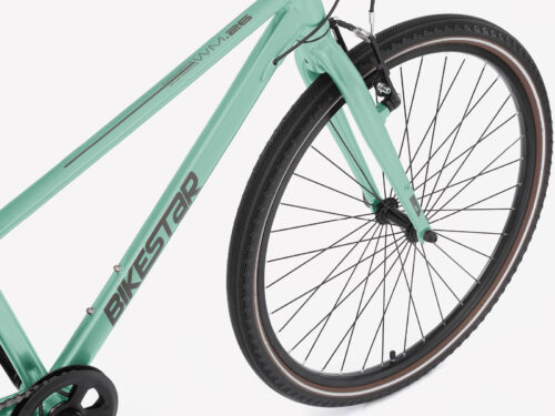 **Lichtgewicht** De 26 inch fietsen in deze Bikestar LW serie zijn met ca 9.8 kilo bijzonder licht van gewicht. Het sterke en sportieve aluminium frame is echter zeer stabiel en veilig en gevormd naar de ergonomie van het menselijk lichaam. **Vanaf 142 cm lichaamslengte** Bikestar produceert al jarenlang prima fietsen die voldoen aan alle wettelijke eisen. Bikestar gebruikt alleen maar gecertificeerde en gifvrije materialen. Een prettig idee, omdat u vanzelfsprekend alleen het beste wil voor uw (klein)kind of voor uzelf. Dit model is geschikt voor de jeugd, maar ook voor niet al te grote en zware volwassenen. **Geschikt vanaf 10 jaar** Dit model, met 26 inch wielen en een framehoogte van 33 cm, is geschikt voor kinderen vanaf 10 jaar of een lichaamslengte vanaf 142 cm. Omdat het stuur en het zadel zowel in hoogte als hoek verstelbaar zijn kan het kind er geruime tijd van gebruik maken, ook na een groeispurt. De verstelmogelijkheden houden eveneens in dat dit model geschikt is voor scholieren en volwassenen die een sportieve zithouding en een lichte stadsfiets op waarde kunnen schatten. **Speciale trapas** Dit fietsje is voorzien van een bijzondere ISO-trapas, waardoor het trappen heel licht gaat. Trappen gaat zo heel licht, het gaat bijna vanzelf! Dankzij de 9 versnellingen Shimano Altus derailleur en het lage gewicht is deze fiets een heel fijne fiets voor heuvelachtig terrein, of op plaatsen waar je vaak met harde wind te maken hebt. **Een volwaardige fiets** Omdat deze fietsjes zeer licht van gewicht zijn en een lichtlopende trapas hebben, is fietsen hiermee een groot feest. De prachtige afwerking en stoere uitstraling van dit model, met dikke bandjes, krachtige velgremmen en Shimano Altus 9 versnellingen derailleur nodigen uit om er elke dag met veel plezier op rond te rijden. Ervaar het genoegen van een stoere, lichte fiets waarmee je snelheid kunt ervaren.