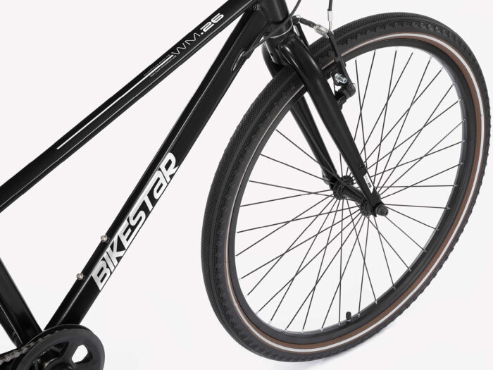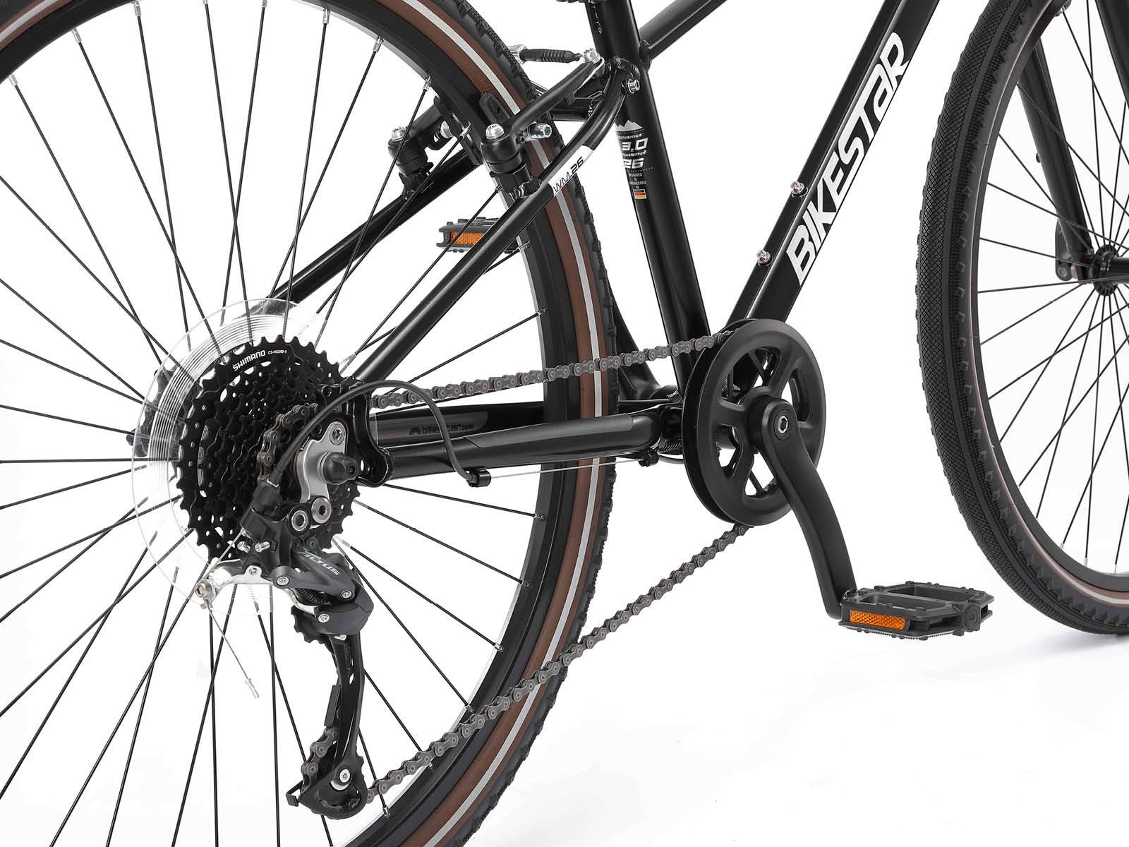 **Lichtgewicht** De 26 inch fietsen in deze Bikestar LW serie zijn met ca 9.8 kilo bijzonder licht van gewicht. Het sterke en sportieve aluminium frame is echter zeer stabiel en veilig en gevormd naar de ergonomie van het menselijk lichaam. **Vanaf 142 cm lichaamslengte** Bikestar produceert al jarenlang prima fietsen die voldoen aan alle wettelijke eisen. Bikestar gebruikt alleen maar gecertificeerde en gifvrije materialen. Een prettig idee, omdat u vanzelfsprekend alleen het beste wil voor uw (klein)kind of voor uzelf. Dit model is geschikt voor de jeugd, maar ook voor niet al te grote en zware volwassenen. **Geschikt vanaf 10 jaar** Dit model, met 26 inch wielen en een framehoogte van 33 cm, is geschikt voor kinderen vanaf 10 jaar of een lichaamslengte vanaf 142 cm. Omdat het stuur en het zadel zowel in hoogte als hoek verstelbaar zijn kan het kind er geruime tijd van gebruik maken, ook na een groeispurt. De verstelmogelijkheden houden eveneens in dat dit model geschikt is voor scholieren en volwassenen die een sportieve zithouding en een lichte stadsfiets op waarde kunnen schatten. **Speciale trapas** Dit fietsje is voorzien van een bijzondere ISO-trapas, waardoor het trappen heel licht gaat. Trappen gaat zo heel licht, het gaat bijna vanzelf! Dankzij de 9 versnellingen Shimano Altus derailleur en het lage gewicht is deze fiets een heel fijne fiets voor heuvelachtig terrein, of op plaatsen waar je vaak met harde wind te maken hebt. **Een volwaardige fiets** Omdat deze fietsjes zeer licht van gewicht zijn en een lichtlopende trapas hebben, is fietsen hiermee een groot feest. De prachtige afwerking en stoere uitstraling van dit model, met dikke bandjes, krachtige velgremmen en Shimano Altus 9 versnellingen derailleur nodigen uit om er elke dag met veel plezier op rond te rijden. Ervaar het genoegen van een stoere, lichte fiets waarmee je snelheid kunt ervaren.
