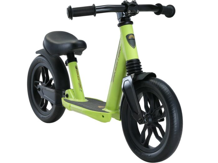 **De eerste stapjes van je kind of kleinkind zijn een wonder, niet in het minst voor het kindje zelf.** Ineens is er veel meer van de omgeving te zien en het kind valt van de ene verwondering in de andere. De eerste stapjes gaan moeizaam, met vallen en opstaan, maar al snel heeft je kindje de smaak te pakken en wil het je overal volgen, of misschien zelfs een eigen weg gaan. Tegen die tijd kan je overwegen het eerste loopfietsje aan te schaffen. Een loopfietsje leert het kindje het evenwicht bewaren, omgaan met de omgeving, sneller bewegen dan lopen en levert daarbij een hele hoop plezier. Bikestar, een bekende fabrikant uit Duitsland, biedt een keur aan loopfietsjes aan. Van hout, van aluminium en andere metalen, met massieve bandjes en luchtbandjes. Voor de allerjongste en ondernemende kinderen vanaf 18 maanden zijn er tot tweewielers om te bouwen driewielers. Voor de stoertjes zijn er MTB-loopfietsjes met 12 inch wielen. Het aanbod is kleurrijk en heel divers, maar altijd is er gelet op de grootste veiligheid in materiaalkeuze, bouwkwaliteit en ergonomie. Een feest voor het kind, een hele geruststelling voor de (groot)ouders. **Licht, stabiel en veilig** Dit loopfietsje weegt niet veel maar is toch stabiel en veilig. Het kind kan met dit fietsje beginnen de wereld te ontdekken. Alle gebruikte materialen, ook de lak en handgrepen, voldoen aan de wettelijke normen van veiligheid en zijn dus gifvrij en van onberispelijke kwaliteit. **Een fantastische ervaring** Met een loopfietsje krijgt het kind de vrijheid om zelf te gaan waar het wil, leert het het evenwicht te bewaren, en leert het omgaan met snelheid. **Full suspension** Waarschijnlijk de enige volledig geveerde kinderloopfiets op de markt! Een geveerde voorvork plus vering aan de achterzijde. **Specificaties** – Leeftijd: vanaf ca. 2 jaar (85cm lengte) – Zadelhoogte: ca. 30-37 cm – Stuurhoogte: ca. 45-47 cm – Gewicht: 3 Kg – Volledig geveerd – voor en achter – voor comfortabele ritjes – In hoogte verstelbaar stuur en zadel – Superlichtgewicht 3 Kg loopfietsje – Solide aluminium frame, zeer licht maar zeer stevig – Licht draaiend stuur – Vanzelfsprekend zijn alleen hoogwaardige, gifvrije onderdelen gebruikt – Comfortabele 10 inch antilek EVA banden – 90%25 voorgemonteerd, de afmontage neemt ca 10 minuten in beslag