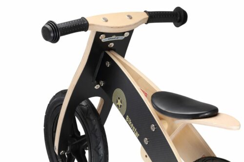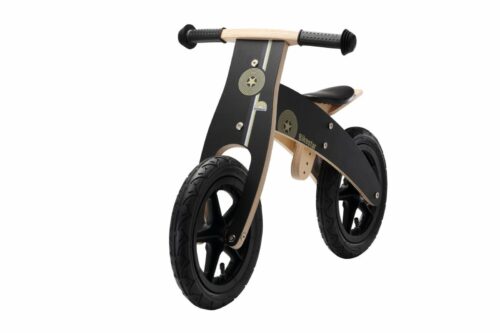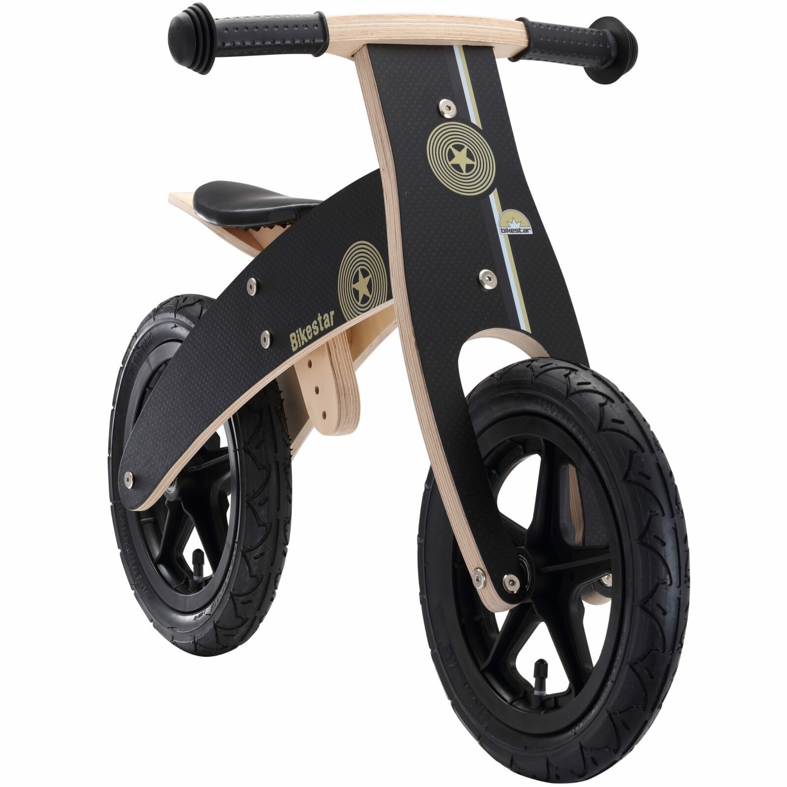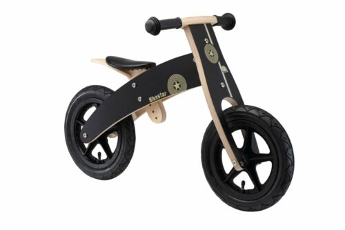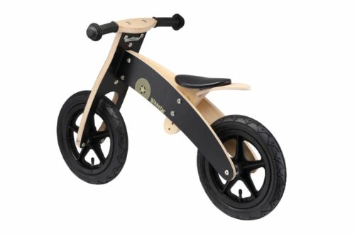 **De eerste stapjes van je kind of kleinkind zijn een wonder, niet in het minst voor het kindje zelf.** Ineens is er veel meer van de omgeving te zien en het kind valt van de ene verwondering in de andere. De eerste stapjes gaan moeizaam, met vallen en opstaan, maar al snel heeft je kindje de smaak te pakken en wil het met je overal volgen, of misschien zelfs een eigen weg gaan. Tegen die tijd kan je overwegen het eerste loopfietsje aan te schaffen. Een loopfietsje leert het kindje het evenwicht bewaren, omgaan met de omgeving, sneller bewegen dan lopen en levert daarbij een hele hoop plezier. Bikestar, een bekende fabrikant uit Duitsland, biedt een keur aan loopfietsjes aan. Van hout, van aluminium en andere metalen, met massieve bandjes en luchtbandjes. Voor de allerjongste en ondernemende kinderen vanaf 18 maanden zijn er tot tweewielers om te bouwen driewielers. Voor de stoertjes zijn er MTB-loopfietsjes met 12 inch wielen. Het aanbod is kleurrijk en heel divers, maar altijd is er gelet op de grootste veiligheid in materiaalkeuze, bouwkwaliteit en ergonomie. Een feest voor het kind, een hele geruststelling voor de (groot)ouders. **Houten frame met slim design** zeer stabiel houten frame met slagvaste verf en in hoogte verstelbaar zadel. Er is ook een extra groot handvat in het frame voor gemakkelijk dragen van de loopfiets. Duurzaam en natuurlijk, met gecertificeerde, niet-giftige veiligheidsgrepen met bescherming tegen stoten. Voorzien van 12 inch extra dikke luchtbanden met het beste veercomfort. Een fantastische ervaring. Met een loopfietsje krijgt het kind de vrijheid om zelf te gaan waar het wil, leert het het evenwicht te bewaren, en leert het omgaan met snelheid. **Specificaties** – Leeftijd: vanaf ca. 3 jaar (93cm lengte) – Zadelhoogte: ca. 37-43 cm – Stuurhoogte: ca. 55 cm – Gewicht: 4 Kg – Licht maar zeer stabiel berkenhouten frame – Slagvaste lak op waterbasis – Stuur met uitslagbegrenzing – Veiligheidshandgrepen, verminderen kans op verwondingen – 12 inch luchtbanden voor lekkere vering. – Ergonomisch in hoogte verstelbaar loopfietszadel – 95%25 voorgemonteerd, afmontage neemt ca 10 minuten in beslag