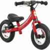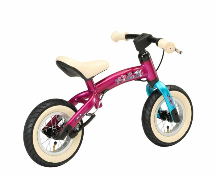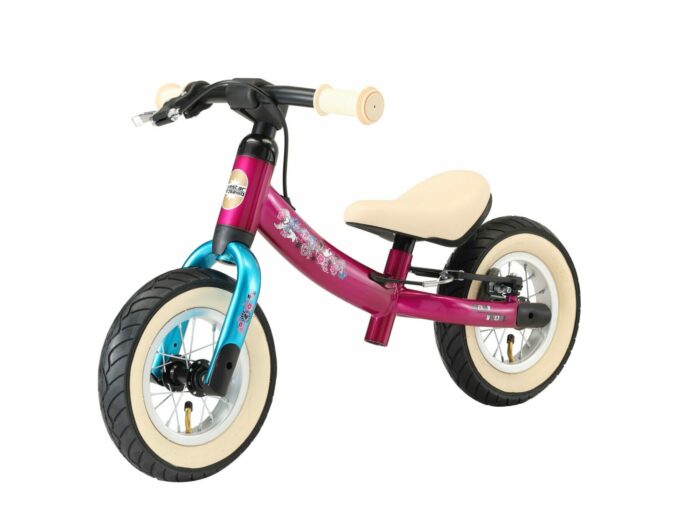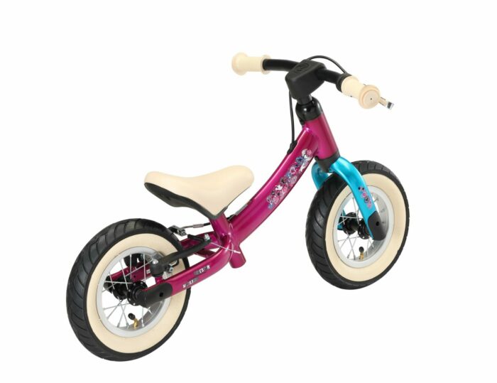 De eerste stapjes van je kind of kleinkind zijn een wonder, niet in het minst voor het kindje zelf. Ineens is er veel meer van de omgeving te zien en het kind valt van de ene verwondering in de andere. De eerste stapjes gaan moeizaam, met vallen en opstaan, maar al snel heeft je kindje de smaak te pakken en wil het je overal volgen, of misschien zelfs een eigen weg gaan. Tegen die tijd kan je overwegen het eerste loopfietsje aan te schaffen. Een loopfietsje leert het kindje het evenwicht bewaren, omgaan met de omgeving, sneller bewegen dan lopen en levert daarbij een hele hoop plezier. Bikestar, een bekende fabrikant uit Duitsland, biedt een keur aan loopfietsjes aan. Van hout, van aluminium en andere metalen, met massieve bandjes en luchtbandjes. Voor de allerjongste en ondernemende kinderen vanaf 18 maanden zijn er tot tweewielers om te bouwen driewielers. Voor de stoertjes zijn er MTB-loopfietsjes met 12 inch wielen. Het aanbod is kleurrijk en heel divers, maar altijd is er gelet op de grootste veiligheid in materiaalkeuze, bouwkwaliteit en ergonomie. Een feest voor het kind, een hele geruststelling voor de (groot)ouders. **Groeit mee met het kind:** het frame van deze fiets kan eenvoudig worden omgedraaid en het zadel is in hoogte verstelbaar. Zo is een lage en later een hoge zithouding in te stellen, waardoor het kind extra lang van de loopfiets gebruik kan maken. **Stoer, stabiel en veilig.** Dit loopfietsje met stabiel en veilig mountainbikeframe helpt het kind de wereld te ontdekken. Alle gebruikte materialen, ook de lak en handgrepen, voldoen aan de wettelijke normen van veiligheid en zijn dus gifvrij en van onberispelijke kwaliteit. Met een loopfietsje krijgt het kind de vrijheid om zelf te gaan waar het wil, leert het het evenwicht te bewaren, en leert het omgaan met snelheid. **Specificaties** – Leeftijd: vanaf ca. 2-3 jaar (88cm lengte) – Zadelhoogte: ca. 28-40 cm – Stuurhoogte: ca. 47 cm – Gewicht: 4 Kg – Omkeerbaar frame, het loopfietsje groeit mee met uw kind – Solide stalen frame met meerdere slagvaste laklagen – Stuur met uitslagbegrenzing – Gifvrije veiligheidshandgrepen – Handrem op het achterwiel met kindermaat handgreep – Extra dikke 10 inch luchtbanden, veert lekker. – 85%25 voorgemonteerd, afmontage neemt ca 10 minuten in beslag