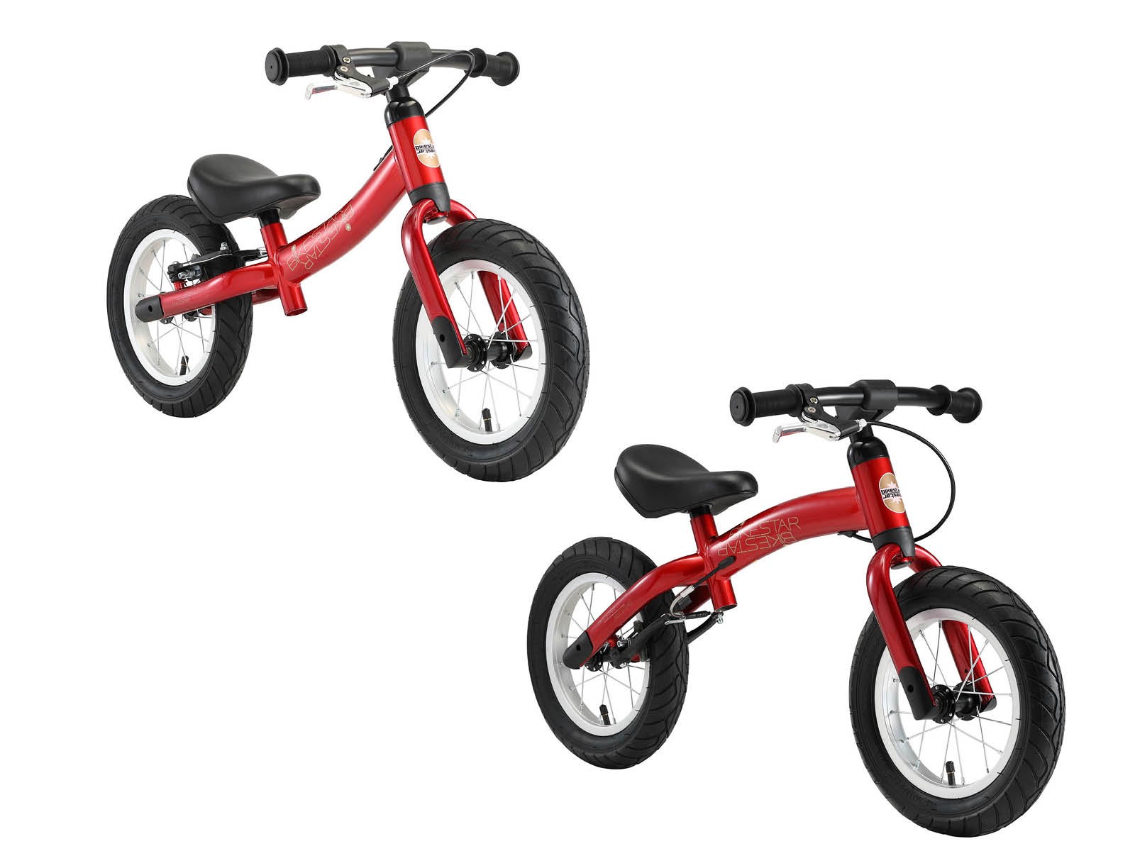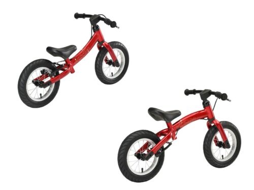 **De eerste stapjes van je kind of kleinkind zijn een wonder, niet in het minst voor het kindje zelf.** Ineens is er veel meer van de omgeving te zien en het kind valt van de ene verwondering in de andere. De eerste stapjes gaan moeizaam, met vallen en opstaan, maar al snel heeft je kindje de smaak te pakken en wil het je overal volgen, of misschien zelfs een eigen weg gaan. Tegen die tijd kan je overwegen het eerste loopfietsje aan te schaffen. Een loopfietsje leert het kindje het evenwicht bewaren, omgaan met de omgeving, sneller bewegen dan lopen en levert daarbij een hele hoop plezier. Bikestar, een bekende fabrikant uit Duitsland, biedt een keur aan loopfietsjes aan. Van hout, van aluminium en andere metalen, met massieve bandjes en luchtbandjes. Voor de allerjongste en ondernemende kinderen vanaf 18 maanden zijn er tot tweewielers om te bouwen driewielers. Voor de stoertjes zijn er MTB-loopfietsjes met 12 inch wielen. Het aanbod is kleurrijk en heel divers, maar altijd is er gelet op de grootste veiligheid in materiaalkeuze, bouwkwaliteit en ergonomie. Een feest voor het kind, een hele geruststelling voor de (groot)ouders. **Licht, stabiel en veilig** Dit loopfietsje weegt niet veel maar is toch stabiel en veilig. Het kind kan met dit fietsje beginnen de wereld te ontdekken. Alle gebruikte materialen, ook de lak en handgrepen, voldoen aan de wettelijke normen van veiligheid en zijn dus gifvrij en van onberispelijke kwaliteit. **Groeit mee met het kind** Het frame van deze fiets kan eenvoudig worden omgedraaid en het zadel is in hoogte verstelbaar. Zo is een lage en later een hoge zithouding in te stellen, waardoor het kind extra lang van de loopfiets gebruik kan maken. **Een fantastische ervaring** Met een loopfietsje krijgt het kind de vrijheid om zelf te gaan waar het wil, leert het het evenwicht te bewaren, en leert het omgaan met snelheid. **Specificaties** – Leeftijd: vanaf ca. 3-4 jaar (93cm lengte) – Zadelhoogte: ca. 32-43 cm – Stuurhoogte: ca. 48 cm – Gewicht: 4,8 Kg – Omkeerbaar frame, het loopfietsje groeit mee met uw kind – Solide stalen frame met meerdere slagvaste laklagen – Licht draaiend stuur en traploos verstelbaar zadel – Gifvrije veiligheidshandgrepen – Extra dikke 12 inch luchtbanden voor lekkere vering. – Handrem op het achterwiel met kindermaat handgreep – 85%25 voorgemonteerd, afmontage neemt ca 10 minuten in beslag