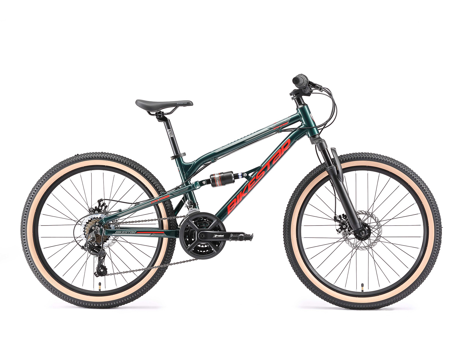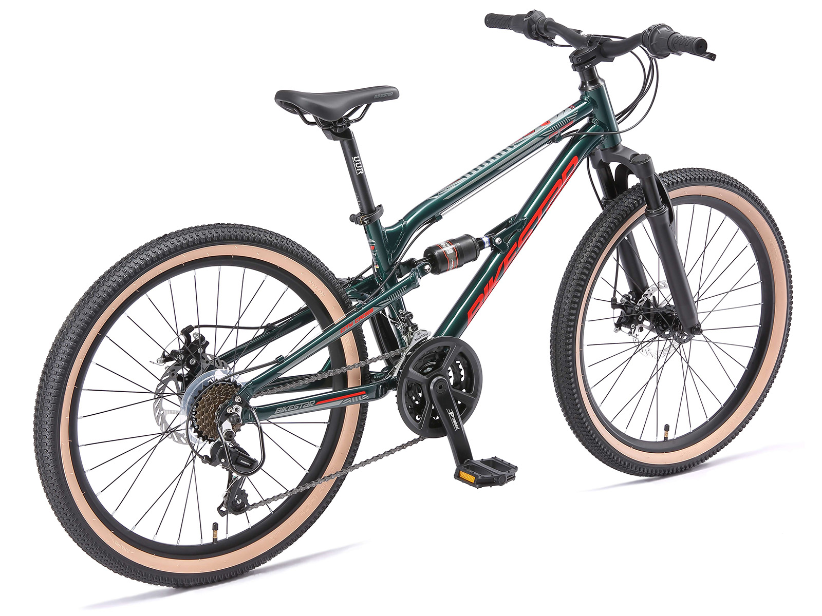 Bikestar MTB Fully alu 21speed 24inch groen/rood