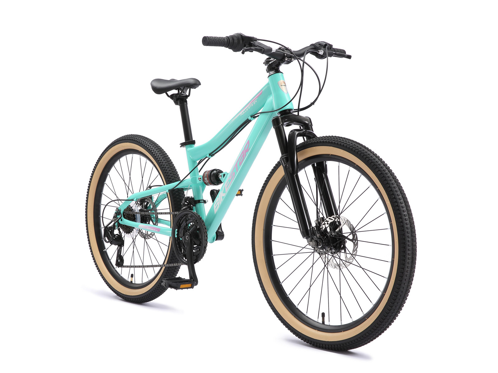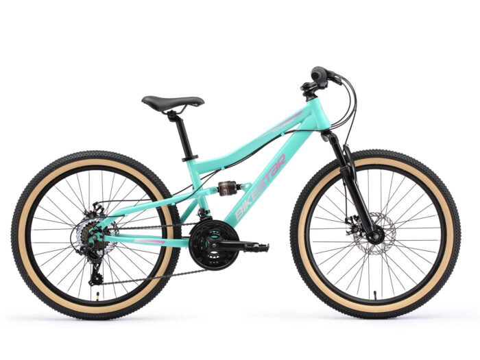 Bikestar MTB Fully staal 21speed 24inch mintgroen/roze