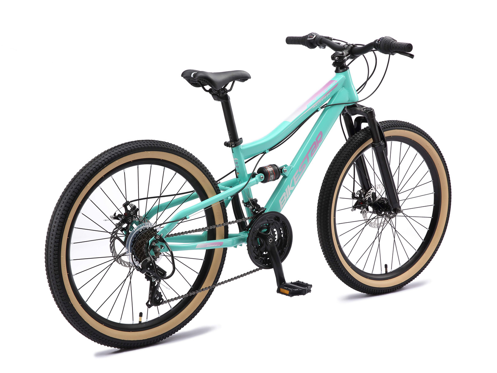 Bikestar MTB Fully staal 21speed 24inch mintgroen/roze