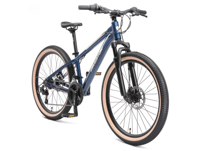 ** Een veilige mountainbike ** Zeer stabiel aluminium frame voor dagelijks gebruik op de berg, in de stad of op school. Met een bandenmaat van 24 inch en framemaat 12,5 inch is hij geschikt voor jongens of meisjes, vanaf ca. 130cm. Met het 21-speed Shimano derailleur-systeem met bijna naadloze schakeling kun je elke situatie aan. De bijzonder gripvaste schijfremmen aan de voor- en achterkant zorgen voor de nodige controle. ** Bikestar kwaliteit ** Bikestar is gespecialiseerd in de productie van hoogwaardige fietsen die perfect op hun taak berekend zijn. Daarom worden alleen hoogwaardige componenten gebruikt, die bijdragen aan de veiligheid en duurzaamheid van de fiets. De fiets wordt 90%25 compleet gemonteerd afgeleverd. U dient zelf nog de pedalen, zadel en het voorwiel te monteren. U doet er goed aan de fiets voor het eerste gebruik door een fietsenmaker te laten controleren en de fiets om de zoveel maanden een onderhoudsbeurt te laten geven voor een lang en veilig gebruik. Bikestar staat al tien jaar voor een productontwerp dat de harten van kinderen inspireert. Met zijn merken BIKESTAR, STAR-SCOOTER en STAR-SKATEBOARDS heeft het bedrijf een reusachtig assortiment kindervoertuigen beschikbaar. De firma overtuigt door snelle levering en permanente beschikbaarheid van reserveonderdelen. ** Specificaties ** – Leeftijd: 9-13 jaar (vanaf 130cm lengte) – Zadelhoogte: ca. 64-81 cm – Stuurhoogte: ca. 85-87 cm – Gewicht: 16 Kg – Wielmaat 24 inch – Framehoogte: 12,5 inch (32 cm) – Versnellingen: 21 (Shimano) – Framemateriaal: 6061 aluminium – Geveerde voorvork met 55 mm veerweg – Derailleur: Shimano Tourney RD-TY300 – Schakelaar: Shimano draaigreep – Cassette: Shimano MF-TZ500 – Remmen: schijfremmen – Ketting: Shimano TZ-21 – Max. toegestaan gewicht: 70 Kg – 90%25 voorgemonteerd