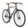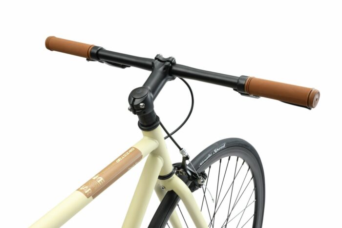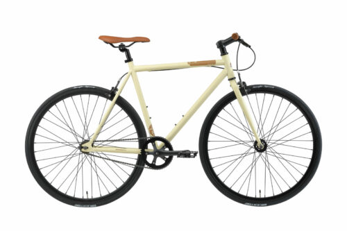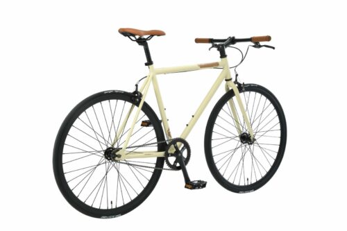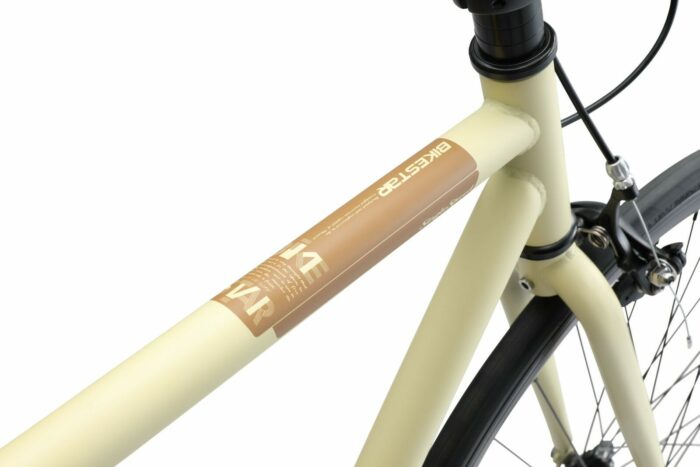 **De Bikestar Singlespeed is een mooi retro vormgegeven stadsfiets met één versnelling en een minimalistische uitstraling.** Precies wat je nodig hebt om stijlvol op je bestemming aan te komen. Voor personen vanaf 170 cm. **Retro stijl** Met onze Single Speed fiets voelt u tijdens elke rit de retro flair gecombineerd met minimalisme. De ongeëvenaarde rijervaring van een Single Speed zorgt ervoor dat u op deze fiets wilt blijven zitten – onze vintage ontwerpen stralen understatement en stijl uit en zijn een echte blikvanger op de weg. **Perfect voor de stad** Onze single speed racefiets is snel en wendbaar. De dubbelwandige velgen zorgen voor stabiliteit, zelfs bij hogere snelheden, en de V-brakes voor en achter garanderen de nodige controle. Deze fiets zal uw trouwe metgezel worden in het dagelijks leven, of u nu naar uw werk reist of in uw vrije tijd. **Sterk en elegant** Duitse techniek ontmoet modern vintage design in deze fiets, geïnspireerd door de huidige trends in de fietssector. Wij plannen, bouwen en ontwerpen onze producten nog steeds zelf in München, selecteren de onderdelen voor onze fietsen zelf en zorgen ervoor dat veiligheid en duurzaamheid centraal staan. Het speciaal geconstrueerde frame van een singlespeed fiets is ontworpen voor hogere snelheden en vaste acceleratie zonder dat dit ten koste gaat van de wendbaarheid. Ons lichtgewicht HI-TEN stalen frame maakt dagelijks rijden tot een eeuwig plezier – met het understatement en de stijl van een vintage fiets. Onze extreem stabiele stijve vork zorgt voor de nodige stabiliteit en draagt ook bij aan de prestaties van de singlespeed fiets. Hij past perfect bij het retro frame en geeft de fiets direct stuurgedrag. De side-pull remmen ronden het rijgedrag af en zijn dankzij de directe remkracht essentieel voor een snelle maar gecontroleerde stop. De aluminium velgen met holle kamer bieden extra stabiliteit en kunnen gemakkelijk hogere belastingen aan dan conventionele velgen. Deze speciale velgen zijn niet alleen een veiligheidsvoorziening, maar weerspiegelen ook de kwaliteit en duurzaamheid van de single-speed fiets. frame: Hi-Ten staal vaste voorvork caliper remmen aluminium holle kamer velgen versnellingen: 1 voorbouw: aluminium headset: NECO zadel in hoogte en hellingshoek verstelbaar gewicht: 13 kg max. toegestaan gewicht: 100 kg