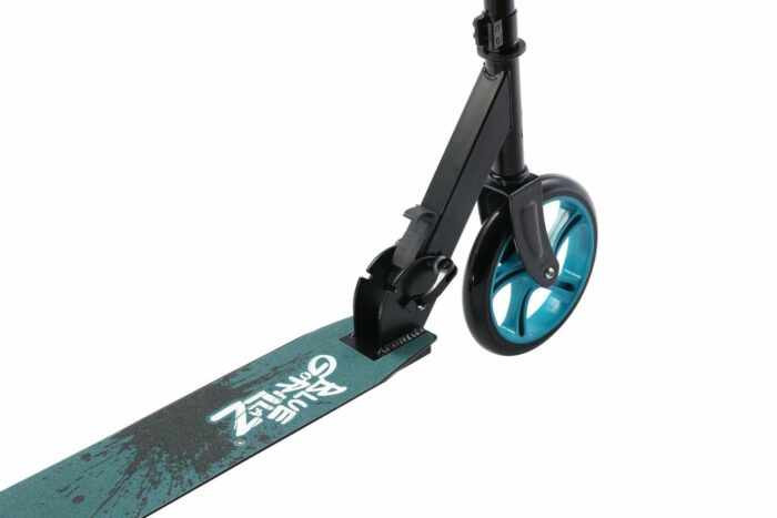 ** Blue Gorillaz, hoge kwaliteit tegen aantrekkelijke prijs** Het stoere Blue Gorillaz logo op de diverse autopeds, vouwsteps en stuntsteps en de bijbehorende stickers geven de producten een urban, streetwise uitstraling. Dit is geen speelgoed, dit is serieus spul! En dat is ook zo. Topkwaliteit in bouwwijze, gebruikte onderdelen en afwerking. De prijs die men voor de producten vraagt is echter alleszins redelijk en competitief. Ook voldoen de producten allemaal aan de veiligheidseisen van de EU. Je kunt je kind, of jezelf, daarom gerust op een Blue Gorillaz step zetten. Het aanbod is bescheiden en de keuze uit kleuren is beperkter dan van de concurrentie, maar de uitstraling is super en de prijs/kwaliteitsverhouding is niet te kloppen! **De kenmerken van dit model:** – Laagliggend voetbord, voorkomt vermoeidheid van de benen – Spatborden voorkomen vuil en nattigheid op kleding – Ultralicht maar stevig aluminium frame – In hoogte verstelbaar stuur met comfortabele zachte handgrepen – Extra sterk antislip Griptape voor stabiel staan op elk traject – 205mm High Rebound wielen voor stiller rijcomfort – Makkelijk opvouwbaar, zonder kans op verwonde vingers – 100%25 voorgemonteerd