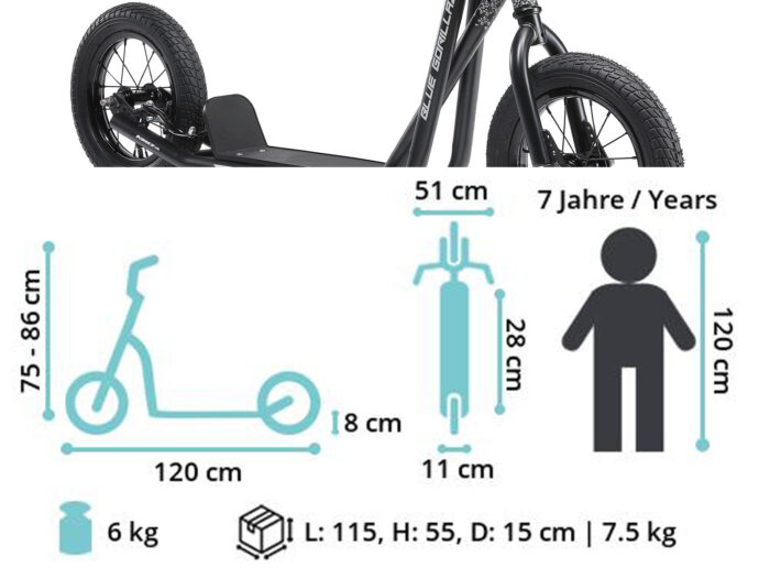 ** Blue Gorillaz, hoge kwaliteit tegen aantrekkelijke prijs** Het stoere Blue Gorillaz logo op de diverse autopeds, vouwsteps en stuntsteps en de bijbehorende stickers geven de producten een urban, streetwise uitstraling. Dit is geen speelgoed, dit is serieus spul! En dat is ook zo. Topkwaliteit in bouwwijze, gebruikte onderdelen en afwerking. De prijs die men voor de producten vraagt is echter alleszins redelijk en competitief. Ook voldoen de producten allemaal aan de veiligheidseisen van de EU. Je kunt je kind, of jezelf, daarom gerust op een Blue Gorillaz step zetten. Het aanbod is bescheiden en de keuze uit kleuren is beperkter dan van de concurrentie, maar de uitstraling is super en de prijs/kwaliteitsverhouding is niet te kloppen! **De kenmerken van dit autopedmodel:** – 12 inch luchtbanden voor lekkere vering op aluminium velgen – Stabiel stalen frame met meerdere slagvaste laklagen – Handrem op het achterwiel met kindermaat handgreep – In hoogte en hoek verstelbaar kogelgelagerd stuur – Gifvrije veiligheidshandgrepen en stuurpolstering – Antislip voetbord – Remleidingen veilig weggewerkt binnen het frame