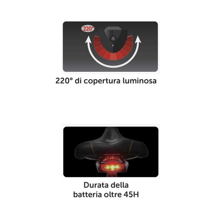 Val op in de schemering en het donker, voor je eigen veiligheid en die van je medeweggebruikers. Dit achterlicht met 3 LEDs werkt op 2x AAA batterijen (meegeleverd) en schijnt 220 graden breeduit vanonder je zadel. Het lichtje weegt 89 gram en kan zowel in de knipperstand (feitelijk niet toegestaan) als in standlicht functie worden ingeschakeld. Het achterlicht wordt geleverd met twee soorten montagebeugeltjes.