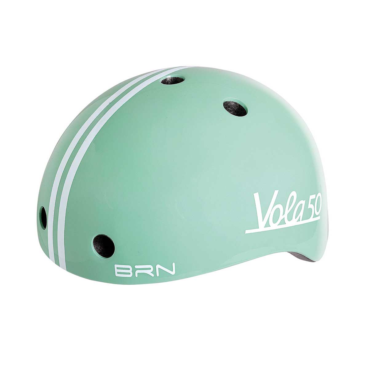 De Vola 50 helmpjes zien er schattig uit met hun vrolijke kleur, retro look en racestrepen. Ze zijn daarbij licht van gewicht, de grootste maat XS weegt 167 gram, en voorzien van het Power Fit systeem met 3 bandjes. Door de 8 ventialtiegaten blijven de kinderkopjes koel, zelfs als ze druk aan het steppen of fietsen zijn. De helmpjes zijn voorzien van het CE logo, TüV GS keur en voldoen aan de EN 14344 norm. De XXS helm is instelbaar voor hoofdjes van 44 tot 48 cm omtrek. De XS helm past op hoofdjes van 48 tot 50 cm.