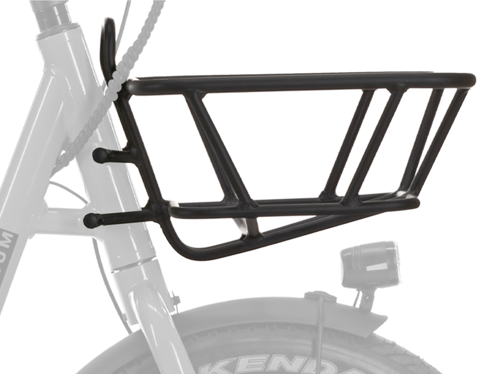 Deze aluminium voordrager is het hoge voorrek. Je kunt er een rugzak in zetten, een boodschappentas of een mand. De bovenrand wordt door ca 20 cm lange pootjes gedragen. Een stevig rek dat geschikt is voor de Sum Alpa en de Sum Uco elektrische fietsen. Hoewel het ook op de Stealth serie te monteren is, zal het op deze sportieve modellen al snel als topzwaar uitzien. Het rek wordt aan de nokken op het frame geschroefd en draait hierdoor niet mee met het stuur. Dat zal de eerste paar keer misschien vreemd aanvoelen maar het went vanzelf.