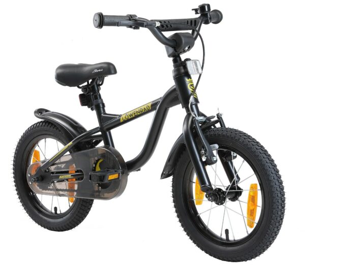 **De Löwenrad kinderfietsen hebben een stoere uitstraling.** De fietsjes zijn geschikt voor meisjes en jongens, waarbij de kleur de doorslag zal geven welke fiets het kind het liefst zou willen hebben. Dit Löwenrad fietsje is waarschijnlijk het eerste echte fietsje dat uw (klein-)kind zal krijgen. Dat is een grote stap in het jonge leventje! De fiets geeft het kind de mogelijkheid om de wereld te ontdekken, zelfstandig naar vriendjes of vriendinnetjes te rijden en een groot aantal nieuwe ervaringen op te doen. Je wilt natuurlijk dat het fietsje veilig is, goed in elkaar is gezet en jarenlang mee kan gaan. De fietsen van Löwenrad voldoen aan alle eisen. Houd er wel rekening mee dat de fietsen niet bedoeld zijn om het kind zelfstandig aan het echte verkeer te laten deelnemen. Ze zijn echter prima geschikt om samen met een volwassen begeleider een fietstochtje te maken. Op afgesloten terrein of een relatief veilige omgeving als de stoep in een rustige woonwijk kunt u het kind wat meer vrijheid gunnen, zodat het leert omgaan met snelheid, onverwachte situaties, vallen en opstaan. De fietsjes kunnen er tegen. **Kenmerken van dit model:** Leeftijd: vanaf ca. 3 tot 4 jaar (100 cm lengte) zadelhoogte: ca. 49-57 cm stuurhoogte: ca. 64-72 cm gewicht: 9.7 KGStevig stalen frame met slagvaste laklaag, Stuur met kogellagers, in hoogte en hellingshoek instelbaar. Ergonomisch gevormd kinderzadel, in hoogte en hellingshoek instelbaar Gecertificeerde, gifvrije veiligheidshandgrepen Voorwielrem met op kinderhandjes aangepaste, instelbare greep. Terugtraprem. Volledig gesloten kettingkast en trapas met kogellagers Reflectoren aan voor- en achterzijde en aan de pedalen 14 inch luchtbanden op hoogwaardige aluminium velgen 95%25 voorgemonteerd, in circa 15 minuten af te monteren