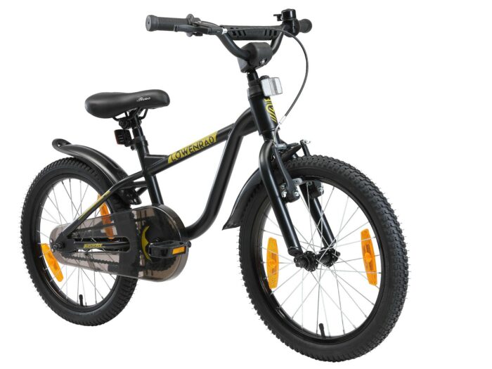 **De Löwenrad kinderfietsen hebben een stoere uitstraling.** De fietsjes zijn geschikt voor meisjes en jongens, waarbij de kleur de doorslag zal geven welke fiets het kind het liefst zou willen hebben. Dit Löwenrad fietsje is waarschijnlijk het eerste echte fietsje dat uw (klein-)kind zal krijgen. Dat is een grote stap in het jonge leventje! De fiets geeft het kind de mogelijkheid om de wereld te ontdekken, zelfstandig naar vriendjes of vriendinnetjes te rijden en een groot aantal nieuwe ervaringen op te doen. Je wilt natuurlijk dat het fietsje veilig is, goed in elkaar is gezet en jarenlang mee kan gaan. De fietsen van Löwenrad voldoen aan alle eisen. Houd er wel rekening mee dat de fietsen niet bedoeld zijn om het kind zelfstandig aan het echte verkeer te laten deelnemen. Ze zijn echter prima geschikt om samen met een volwassen begeleider een fietstochtje te maken. Op afgesloten terrein of een relatief veilige omgeving als de stoep in een rustige woonwijk kunt u het kind wat meer vrijheid gunnen, zodat het leert omgaan met snelheid, onverwachte situaties, vallen en opstaan. De fietsjes kunnen er tegen. **Kenmerken van dit model:** Leeftijd: vanaf ca. 5 jaar (115 cm lengte) zadelhoogte: ca. 57-65 cm stuurhoogte: ca. 73-80 cm gewicht: 11.5 KGStevig stalen frame met slagvaste laklaag, Stuur met kogellagers, in hoogte en hellingshoek instelbaar. Ergonomisch gevormd kinderzadel, in hoogte en hellingshoek instelbaar Gecertificeerde, gifvrije veiligheidshandgrepen Voorwielrem met op kinderhandjes aangepaste, instelbare greep. Terugtraprem. Volledig gesloten kettingkast en trapas met kogellagers Reflectoren aan voor- en achterzijde en aan de pedalen 18 inch luchtbanden op hoogwaardige aluminium velgen 95%25 voorgemonteerd, in circa 25 minuten af te monteren