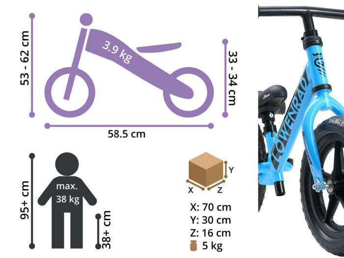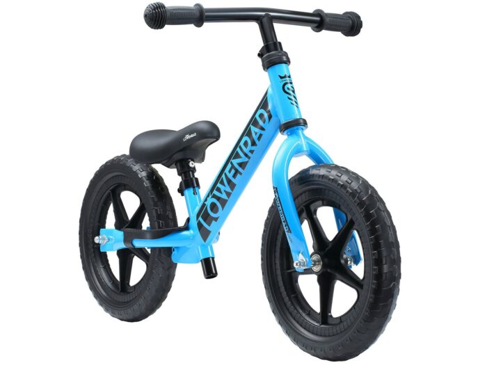 **Het Duitse merk Löwenrad is gespecialiseerd in kinderfietsen en loopfietsen.** De diverse producten die men maakt kenmerken zich door een stoer uiterlijk, vrolijke kleuren en een onberispelijke afwerking. Men maakt gebruik van uitsluitend gecertificeerde onderdelen, gifvrije handgrepen en zadeltjes. De kwaliteit laat niets te wensen over en de prijs is zeer concurrerend. Dat is allemaal fijne informatie voor de (groot) ouders. De gebruikertjes van de loopfietsen merken het natuurlijk ook, want de wielen rollen licht, de sturen sturen strak, remmen werken zoals je verwacht. Daardoor wordt het spelen met een Löwenrad fietsje een feest en leert het kind spelenderwijs balans houden, snelheid maken en afremmen, opletten op andere weggebruikers – al raden we ten sterkste aan dit artikel enkel op afgeschermd terrein zoals een schoolplein of speeltuin, en anders zeker onder toezicht van een volwassene te gebruiken. Zie het kind genieten van de vrijheid, de mogelijkheden om de wereld om zich heen te ontdekken en min of meer zelfstandig naar vriendjes en vriendinnetjes te rijden. Dat gun je elk kleintje! **Kenmerken van dit model:** – Leeftijd: vanaf ca. 3-4 jaar (93 cm lengte) – Zadelhoogte: ca. 33-43 cm – Stuurhoogte: ca. 53-62 cm – Gewicht: 3 Kg – Solide stalen frame met slagvaste lak – Bijzonder licht draaiend stuur – In hoogte verstelbaar zadel en stuur – Veiligheidshandgrepen – 12 inch massieve schuimen antilekbanden – 90%25 voorgemonteerd, de afmontage neemt ca 10 minuten in beslag
